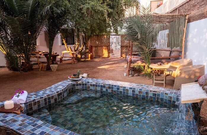 Ovu jedinstvenu vilu u marokanskom stilu dizajnirali smo moja supruga i ja. Oboje smo umetnici, a sav dizajn kuće, uključujući nameštaj, je prvobitno umetničko delo. Dizajnirali smo ga da ostavimo utisak o butik hotelu, a sve u kući u Dahabu prave profesionalni zanatlije. Ovo je jedinstveno, inovativno iskustvo koje obogaćuje, ali i estetski Dahab. Kuća je udaljena manje od jednog minuta hoda od plaže, kao i do svih vrsta usluga.