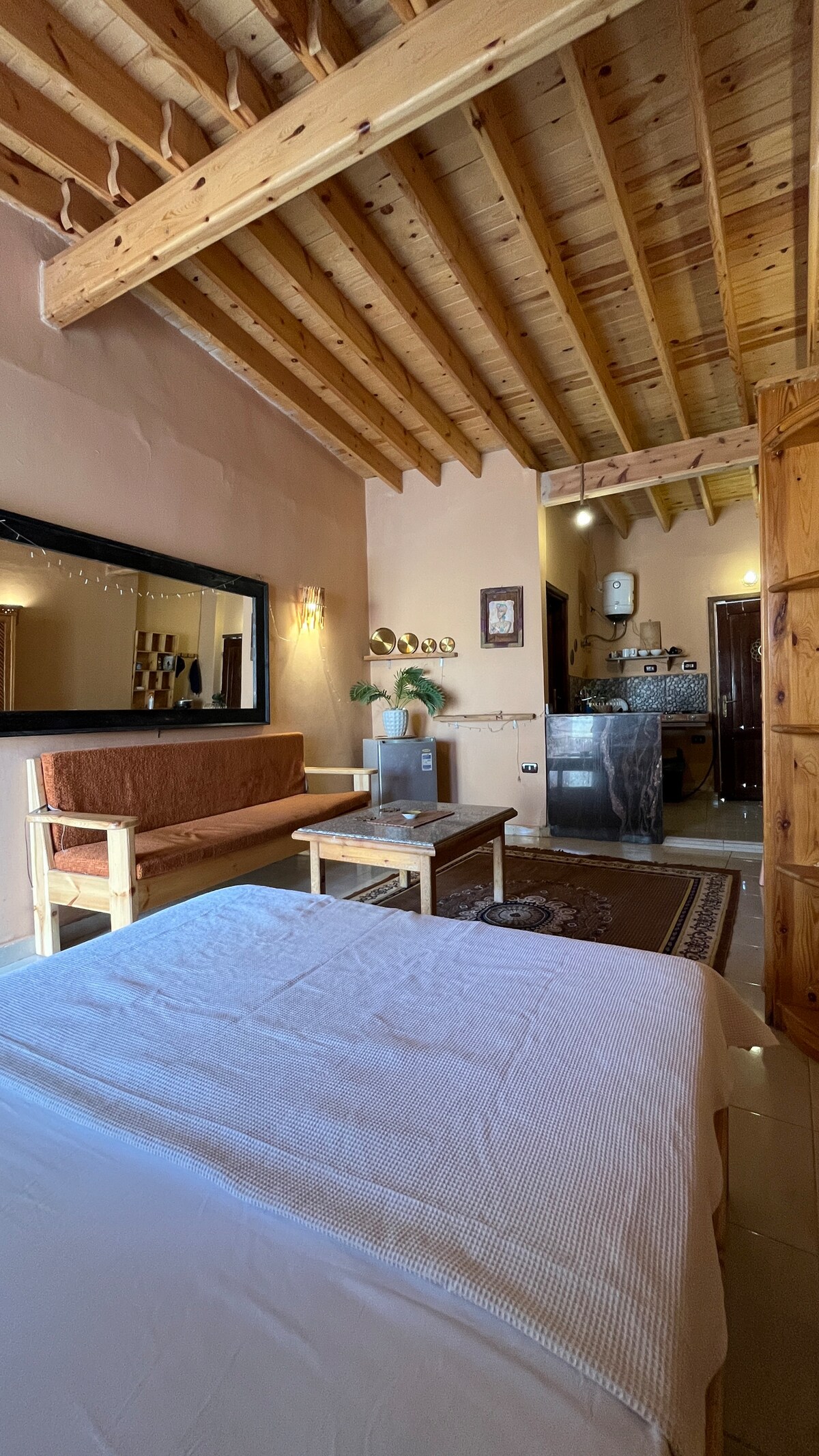 Relax in this tranquil home Strategically located in the heart of Dahab In the Al Manara area Amidst restaurants and cafes Just 2-3 minutes from the beach. The home features air conditioning, a bedroom with a king-size bed and wardrobe, A fully equipped kitchen with all appliances Minutes from the sea, and steps away from shops, beaches, and diving centers. *Electricity is not included in the accommodation price for your personal use.
