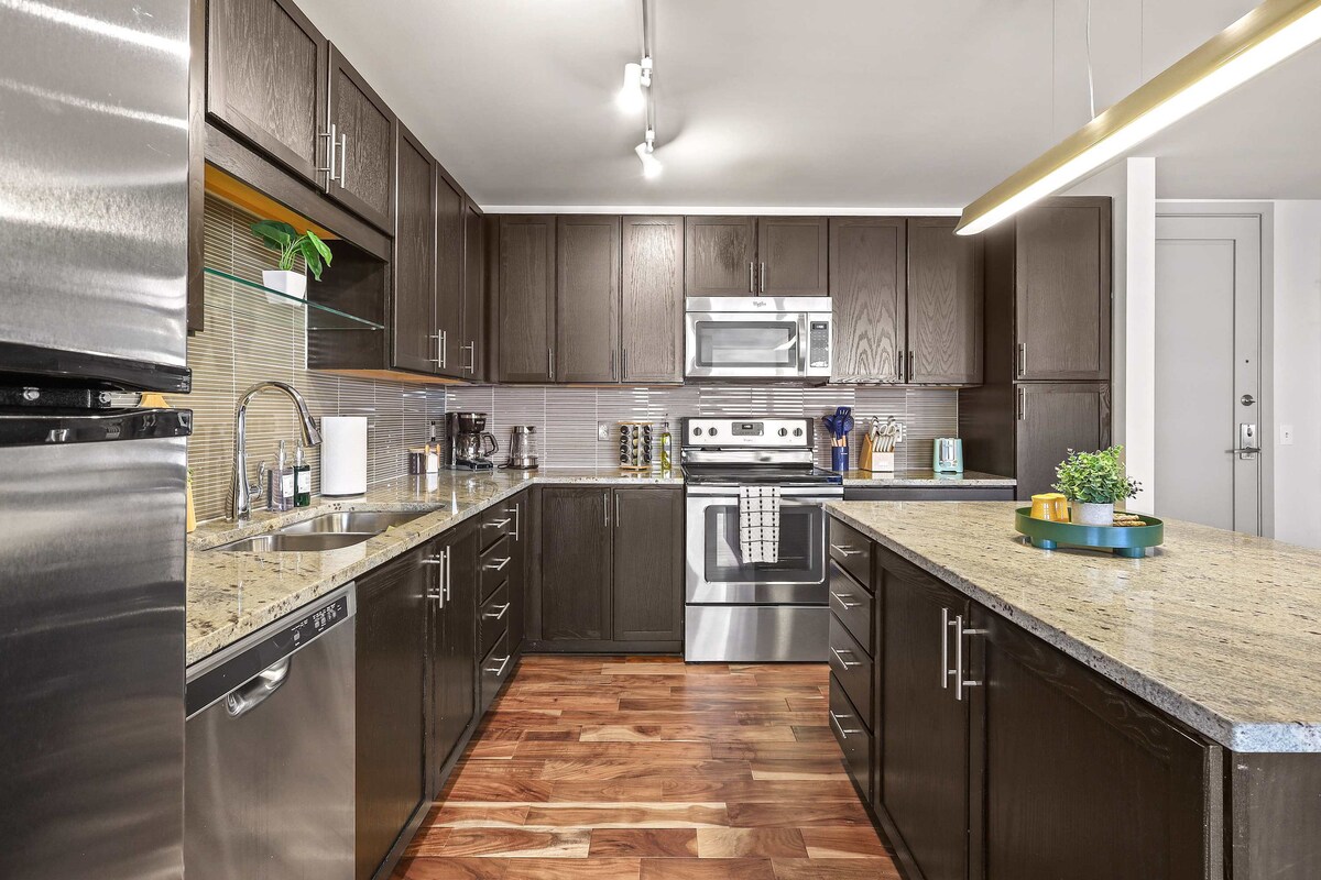 Doživite najbolje od grada u našem modernom minimalističkom utočištu! Kućni ljubimci ostaju besplatni Uživajte u veličanstvenom pogledu na grad iz udobnosti našeg elegantnog i elegantnog nebodera. Smješteni u srcu centra grada, bićete na korak od najpopularnijih atrakcija, modernih restorana i živopisnih barova. Naš stan je savršeno utočište za parove, putnike koji putuju sami i poslovne ljude koji traže modernu i praktičnu bazu za svoje gradske avanture.