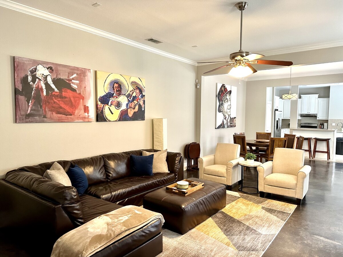 Otkrijte modernu eleganciju našeg doma samo nekoliko minuta od centra Dalasa! Ovaj elegantni smještaj prikladan za porodice spaja vrhunski dizajn sa živopisnim detaljima, uključujući tropske tapete i punu igraonicu sa video igrama, skee-ball, vazdušni hokej i stoni fudbal. Opustite se u novoj hidromasažnoj kadi, opustite se u visećoj ležaljci, večerajte u dvorištu ili vježbajte u teretani kod kuće. Raspored otvorenog koncepta, prirodno svjetlo i profesionalna kuhinja čine ga savršenim za porodice i prijatelje da se okupljaju i stvaraju uspomene.