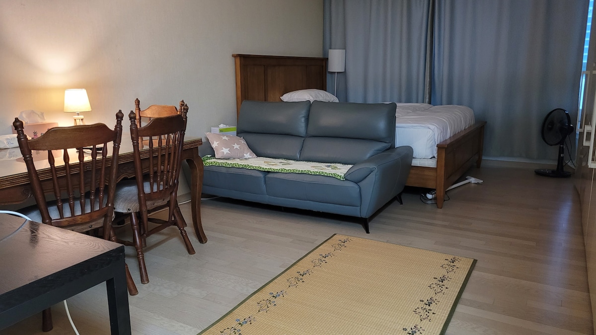 Širok pogled na more Inčeon Zapadnog mora, u blizini Seula, Kada treba da se odmorite neko vrijeme u uskom svakodnevnom životu Dođite da se igramo :) Održava se čistim. Spoljna terasa sa pogledom na more i zeleni park Osvežavajući pogled na okean kroz prozor od poda do plafona, Veseli apartman sa uslugama, dvosobni studio Aerodrom ▪️Inčeon 15-20 minuta automobilom 25–30 minuta automobilom do glavnih turističkih atrakcija kao što su ▪️Inspire, Paradise i plaža Eulvang-ri ▪️Gueup Batter Wharf 2 km 5-7 minuta automobilom Centralni deo ▪️trgovačke zone, restorani, kafići na 5 minuta hoda. Prodavnica mešovite robe na prvom spratu zgrade ▪️Netflix ▪️Standardne 2 osobe - maksimalno 4 osobe (ako je više od 2 osobe, postoji dodatni trošak) ▪️Radno vrijeme - Prijava: 16:00 - Odjava: 11:00 * Za ranu prijavu/kasnu odjavu potrebne su dodatne naknade i zakazivanje termina, pa nas unaprijed kontaktirajte. Ne ▪️primaju se kućni ljubimci Pušenje ▪️u zatvorenom prostoru je apsolutno zabranjeno ▪️Roštilj od svinjske potrbušine nije dozvoljen, meso/riba/škampi se ne mogu peći ▪️Parking (1 automobil je besplatan) - Zgrada B1 ~ B4/Parking - veza sa smještajem (dodatni trošak za više od 2 automobila)