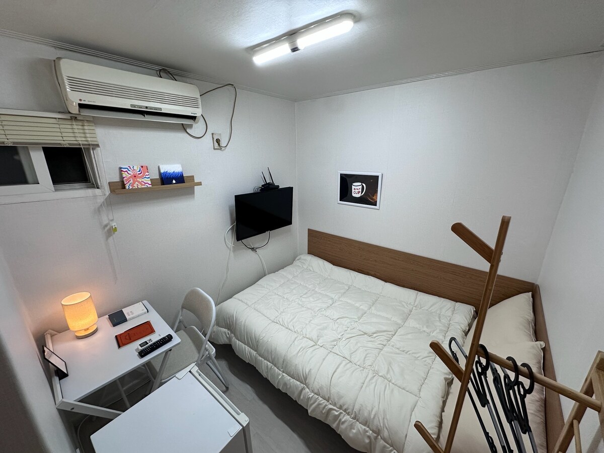 '- Soba 23 kvadratna metra, krevet 135*200, radni sto 1200*1800, skladište za prtljag - Funkcionalan, jednostavan pribor za kuvanje, pametni TV od 80 cm - 56 minuta aerodromskim autobusom od aerodroma Inčeon do glavne kapije smještaja (uključujući 6 minuta hoda) - Mjesto gdje možete da prošetate od smještaja Daiso , Olive Young, Times Square), -There are Yeongdeungpo Station on Line 1, Munrae Station on Line 2, and Yeongdeungpo Market Station on Line 5 - lako se premjestiti u atrakcije