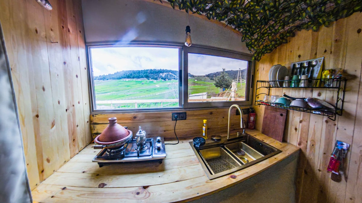 Pobjegnite u spokojnu ljepotu planina u ovoj šarmantnoj brvnari. Smješten u mirnom području, naš udoban smještaj nudi savršenu ravnotežu udobnosti i avanture. Bilo da želite da se opustite uz pogled koji oduzima dah sa terase ili da istražite obližnje planinarske staze, imate sve što vam je potrebno za nezaboravan boravak. Brvnara se nalazi između Ifrane i Azrou (15 minuta od Ifrane i 10 od Azroua). Od parking mjesta do brvnare ima 5 minuta hoda uzbrdo.