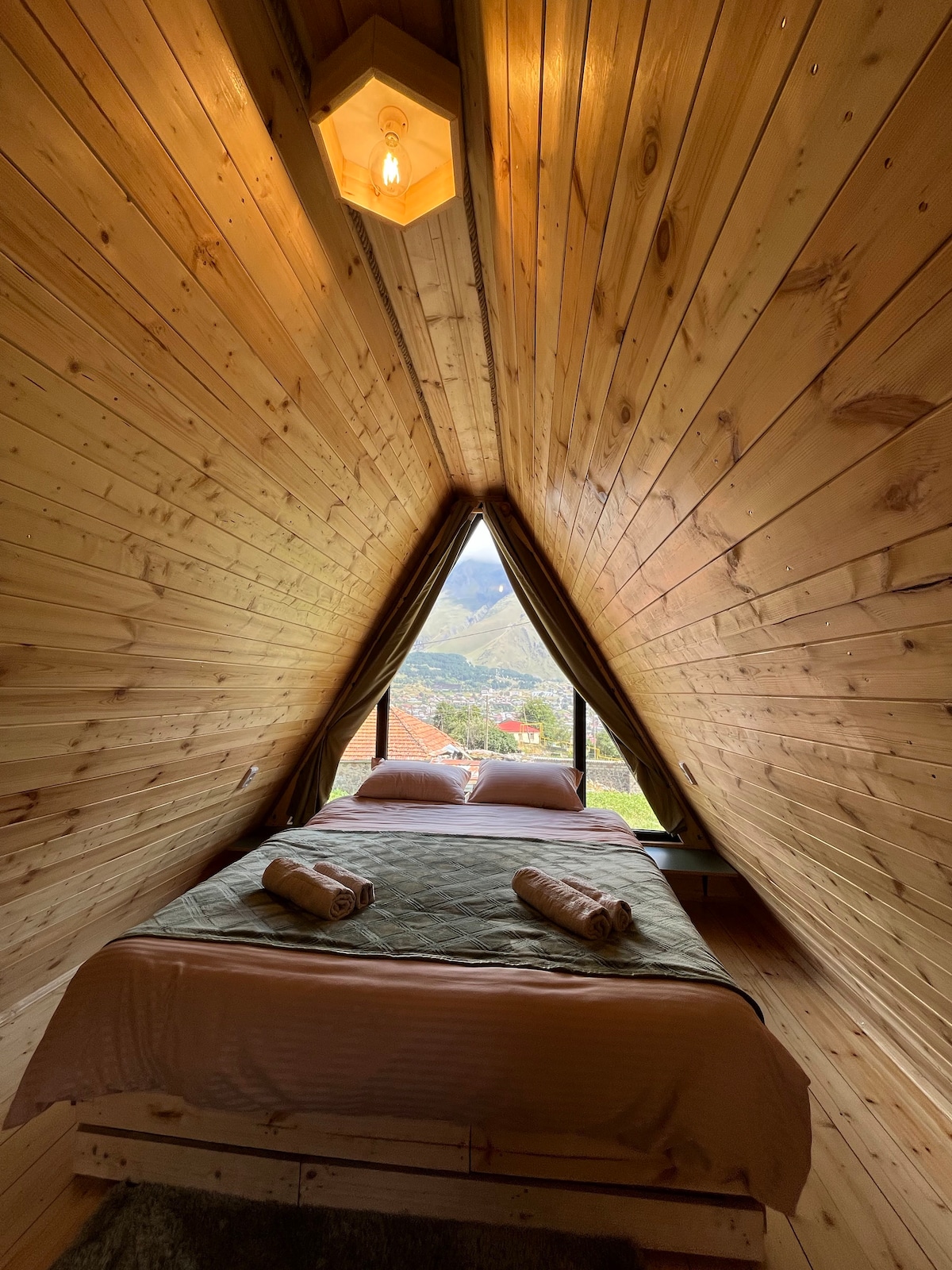 opis Gabua Wooden Glamping se nalazi u selu Gergeti, opština Kazbegi, naš Glamping ima spavaću sobu, privatno kupatilo, kuhinju, terasu, koja ima spoljni namještaj, spoljni bazen, besplatan Wi-Fi i još mnogo toga u bajkovitim planinama. Stepantsminda centar je udaljen 1,6 km od našeg smještaja. Od našeg glampovanja vodi pješačka staza do crkve Sameba Triniti. Postoje dva najbliža aerodroma, prvi je međunarodni aerodrom u Tbilisiju, a drugi je Međunarodni aerodrom Vladikavkaz.