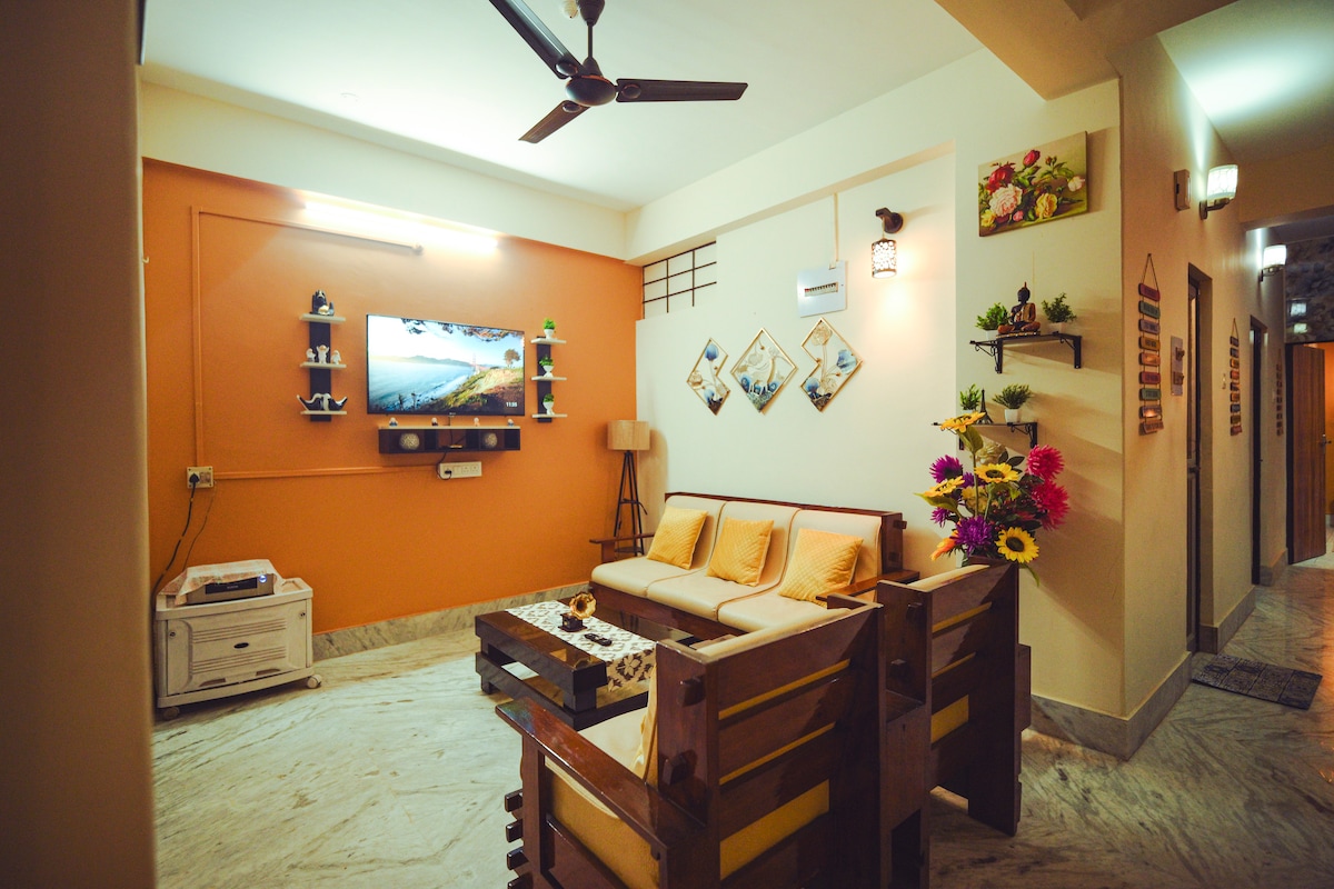 ⏰Kindly note: Check-in/out timings are fixed and changes are not possible. ✔️A spacious and private 1BHK, perfect for couples, solo travelers, or business stays. ✔️Fully furnished with a cozy living room and a comfortable bedroom. ✔️Air conditioned space for a relaxing stay in all seasons. ✔️Attached bathroom with modern fittings. ✔️Clean & hygienic, maintained to high standards. ✔️Fully equipped kitchen–cook your favorite meals with ease. ✔️Smart TV & WiFi–stay entertained and connected.