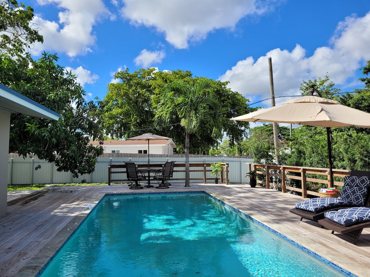 Uživajte u ovom imanju za odmor sa 2 spavaće sobe i 1 kupatilom! Ovaj moderan dom nudi udobnost, mir i odmor od 1,400 kvadratnih metara. Uživaćete u velikom privatnom ograđenom dvorištu, privatnom bazenu, đakuziju, roštilju i obedovanju na otvorenom. 20 minuta od aerodroma FLL, 20 minuta od plaže Danija, 15 minuta od kasina Hard Rok i tržnog centra Sawgrass Mills. Ovo je sjajno mesto za vaš sledeći odmor na Floridi! Ovaj objekat se nalazi u stambenoj četvrti koja se nalazi u stambenoj četvrti mora biti svedena na minimum nakon 22:00.