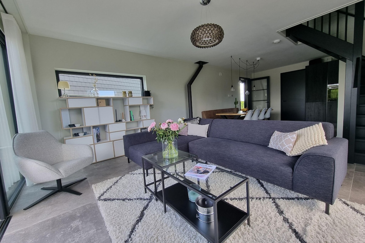 Ова велика луксузна и елегантна вила за 12 особа окружена је водом са три стране и удаљена је од центра Хеег и Хеегермеера.Велика околна башта од 3000м2 чини да се осећате једно са фризијским воденим пејзажом. Почните ујутру са освежавајућим умаком, а увече уживајте у роштиљу или уживајте у свежем ваздуху у хидромасажној кади.Једрење, сурфовање, СУПинг, све је то могуће са ваше терасе.Divno je uživati u ovoj novoj vili.