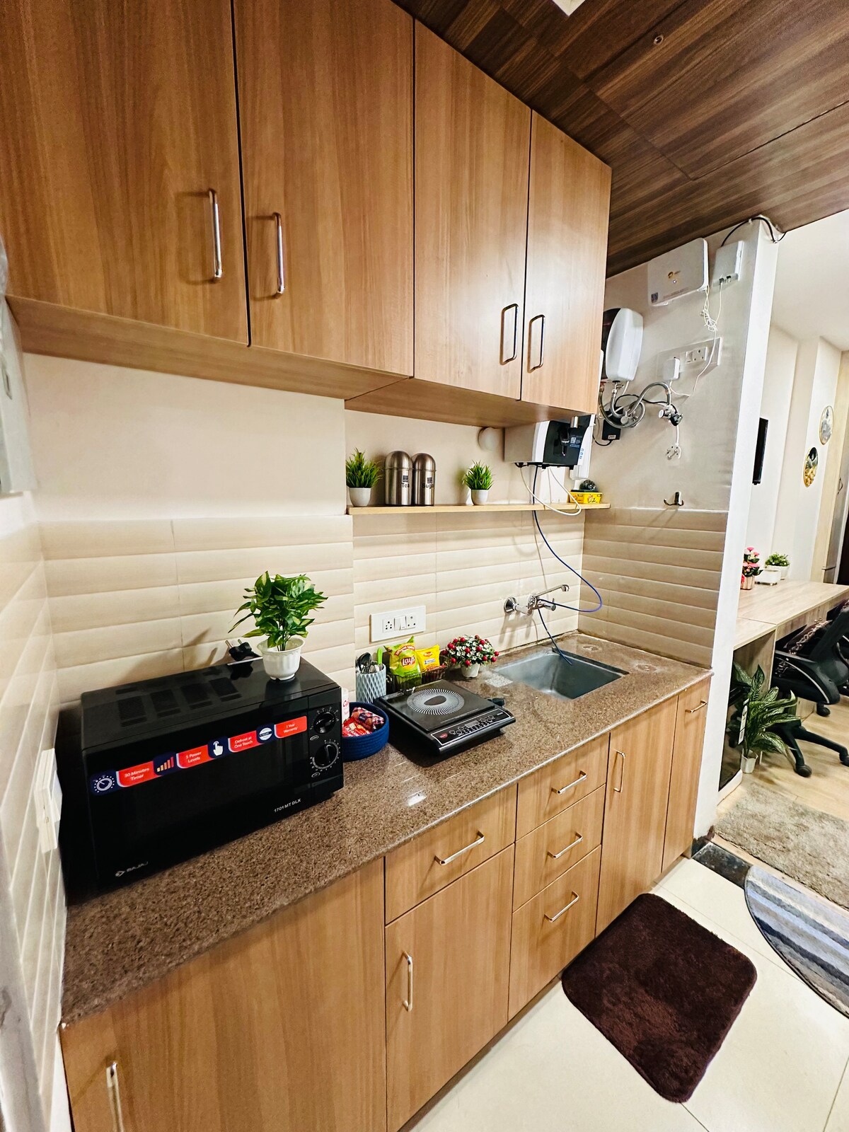 Dobro došli u UDOBAN KUTAK!!!! Ušuškan na mirnoj lokaciji, udaljen samo 20 minuta od Tricitija i aerodroma. THE COZY NOOK je jednosoban stan. Stan je na 9. spratu MAYA GARDEN MAGNESIA TOWER-1. Mesto je dizajnirano sa velikim balkonom sa kog gost može da doživi oblakoder i da uživa u pogledu na autoput. UDOBAN KUTAK pruža sledeće pogodnosti: Spavaća soba sa besprekorno čistom posteljinom. Potpuno opremljena kuhinja. Dobro snabdevena kupatila. Grejalica uz dopl.