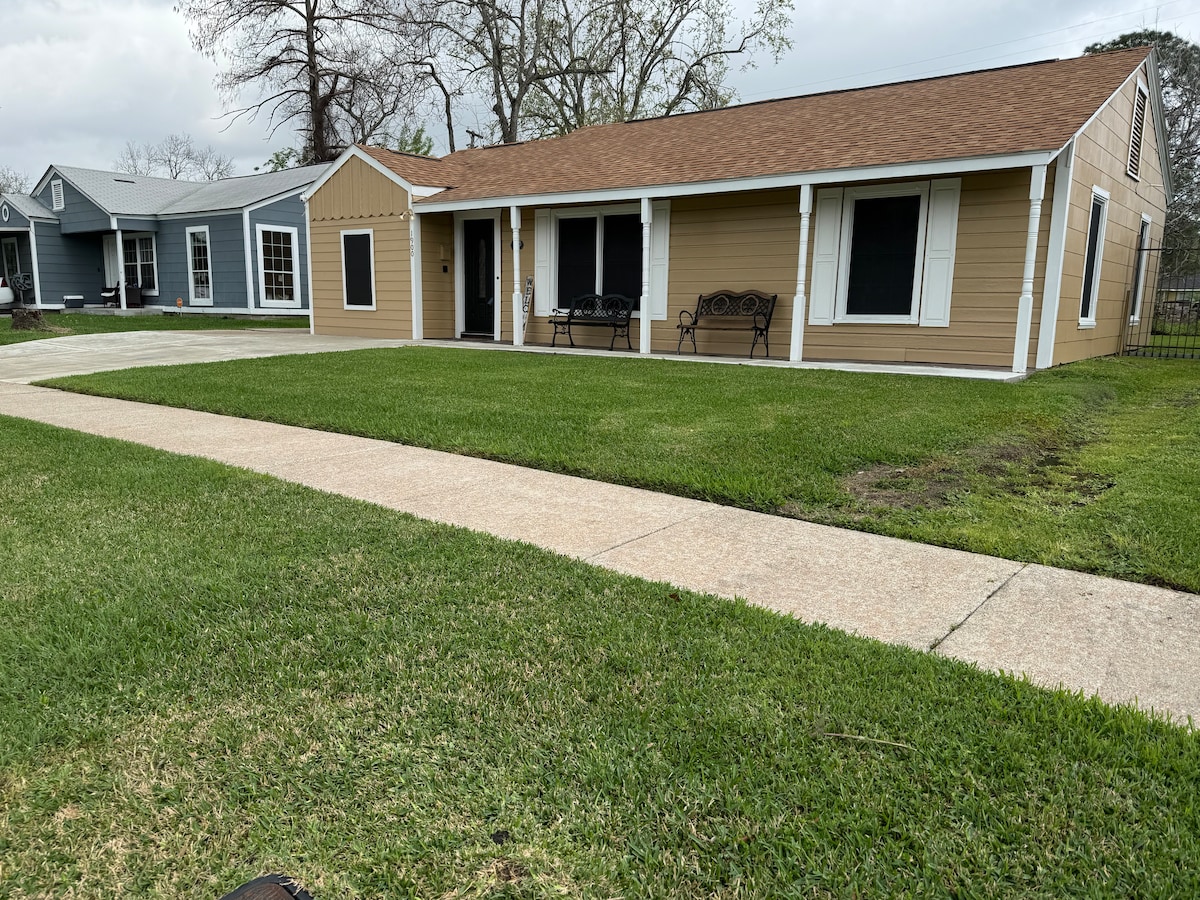 Private home, sleeps 4-6 people. A newly remodeled 1200 sqft home. 2 bedrooms (king/queen), sofa bed, futon, 2 baths, devoted workspace, private quiet area in library. Kitchen features subway tile & granite countertops. Brand new flat screens in each room. Enjoy this quiet, historic neighborhood while traveling for work or visiting the Houston Area. Home is .25 miles to main highway near all Oil & Gas Industry. NASA - 25 mins Downtown Hou - 25 mins Galveston - 45 mins. Great location!