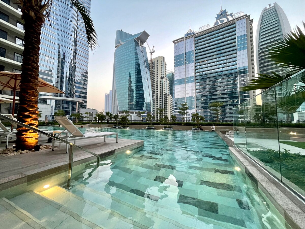 Uživajte u elegantnom doživljaju u ovom centralno lociranom smještaju s kojeg se pruža nevjerovatan pogled na grad Skyline i vodeni kanal. Nalazi se u poslovnom zalivu – odmah pored vrelog centra grada gde se nalaze Burj Kalifa i tržni centar Dubai – Bićete smešteni u najuzbudljivijoj zajednici u kojoj je sve moguće! Uz pristup sadržajima koji poboljšavaju život, veliki bazen sa uređenim baštama u kojima se možete opustiti i opustiti, teretanom, saunom i roštiljem na otvorenom. Namjenski radni sto i jedan besplatan parking.
