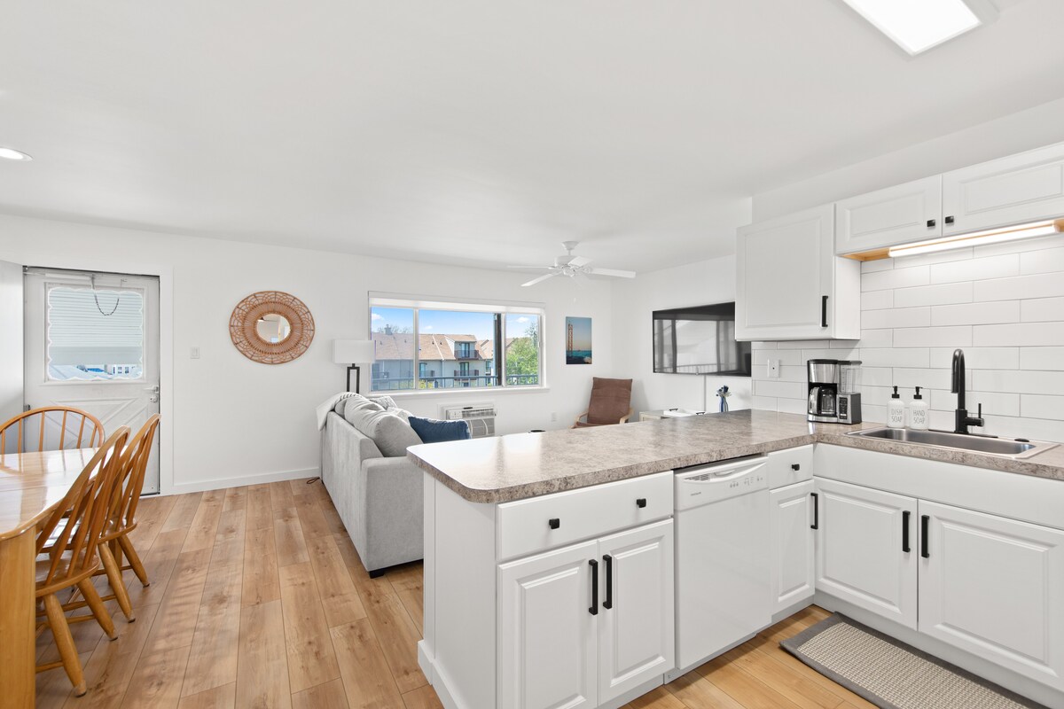 Koraci do plaže! Potpuno renoviran, svetao, moderan, čist stan sa pogledom na okean na balkonu. Mirna lokacija u severnom Oušn Sitiju sa pešačkom udaljenošću do restorana, autobusa, 7-11, terena za mini golf, bioskop, parkova itd. Potpuno novi uređaji i nameštaj. Besplatan Wi-Fi, bračni krevet, televizor od 60inča i 40inča. Izvucite kauč na razvlačenje, potpuno novo kupatilo. Mašina za pranje i sušenje u jedinici. Stanica za kafu Keurig, stanica za punjenje iPhone-a. Privatni balkon. Besplatan parking.
