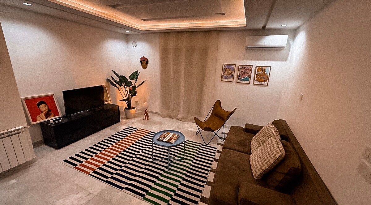 Stan se nalazi u srcu Barda, grada poznatog po istoriji i nacionalnom muzeju. Samo 10 minuta hoda do jednog od najboljih muzeja u zemlji. Stan ima veličanstven pogled na rimske akvadukte du Bardo. Lahneya je živahno područje sa mnoštvom prodavnica, restorana i kafića. Udaljeni ste samo 15 minuta od aerodroma i Medine i čuvene džamije Ez-Zitouna. Stan je lagan i prostran sa svim modernim udobnostima.