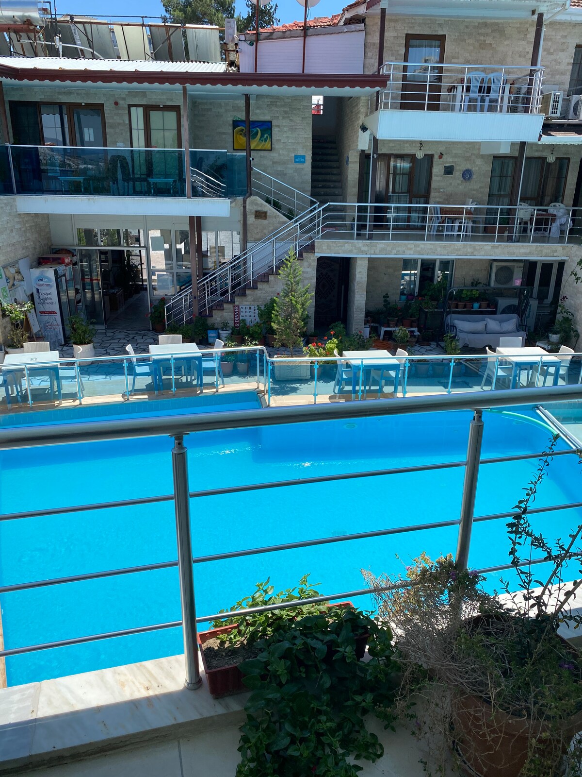 Zdravo! Ovdje Sunrise Aya Hotel. Nalazimo se u neposrednoj blizini Pamukkalea — nedaleko od vas! Naš hotel ima prelijepu baštu i bazen, savršen za opuštanje. Ako želite da doručkujete, rado ćemo vam ga pripremiti (uz dodatnu naknadu). Radujemo se što ćemo vas uskoro ugostiti!