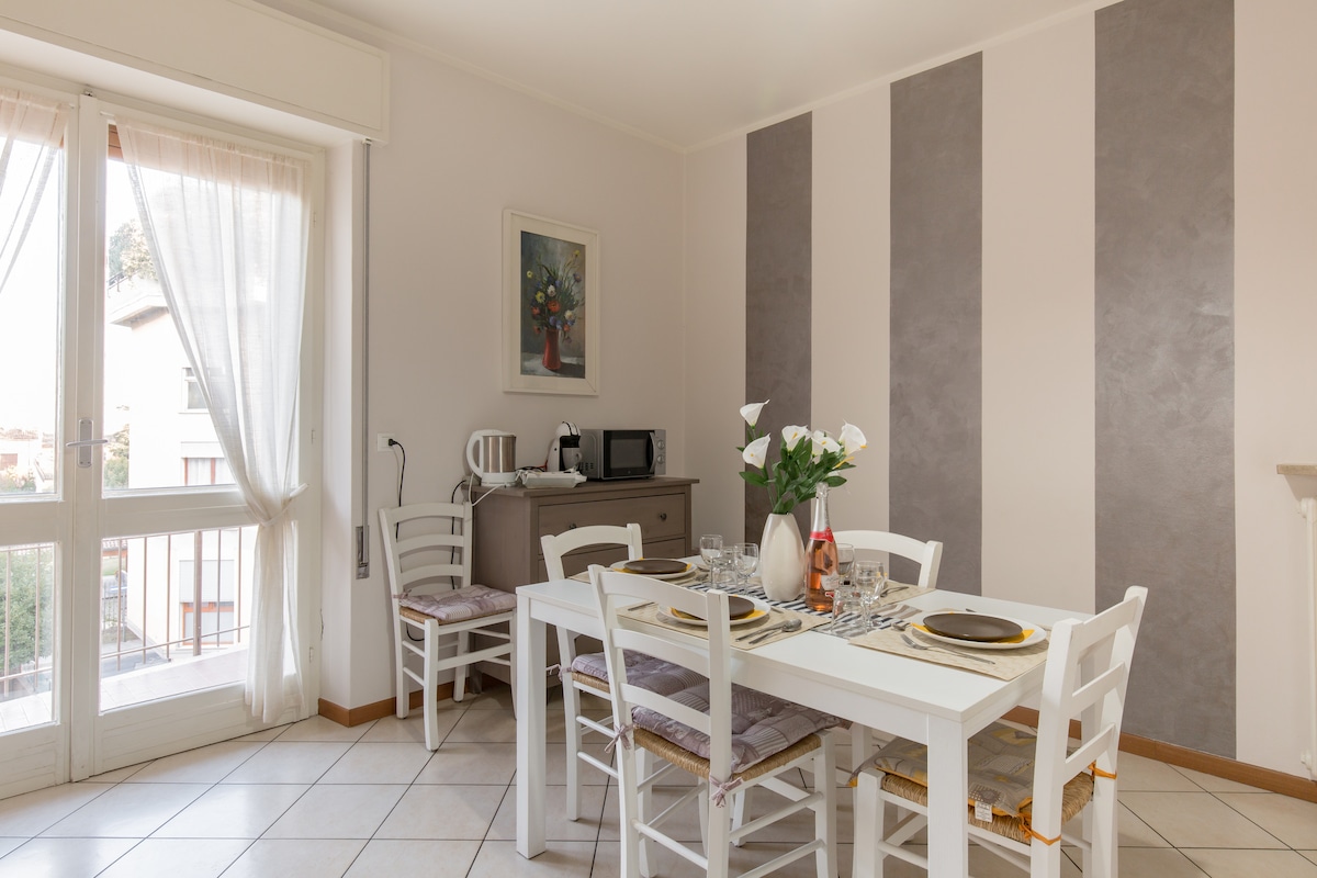 Svetli i originalni stan nekoliko metara od jezera, sa velikom terasom na kojoj možete da večerate, uključujući prostor za opuštanje okružen našim lepim sukulentima. U mirnom i stambenom mjestu. 900 metara od istorijskog centra Desenzana i 100 metara od šetnje jezerom. Delimičan pogled na jezero, planine i zelene bašte. Spa tuš sa turskim kupatilom i hromoterapijom. Besplatan parking na ulici. 30 minuta automobilom od Gardalanda i zabavnih parkova. Cir: 017067-CNI-00733 CIN: IT017067C2DHAHOG7V