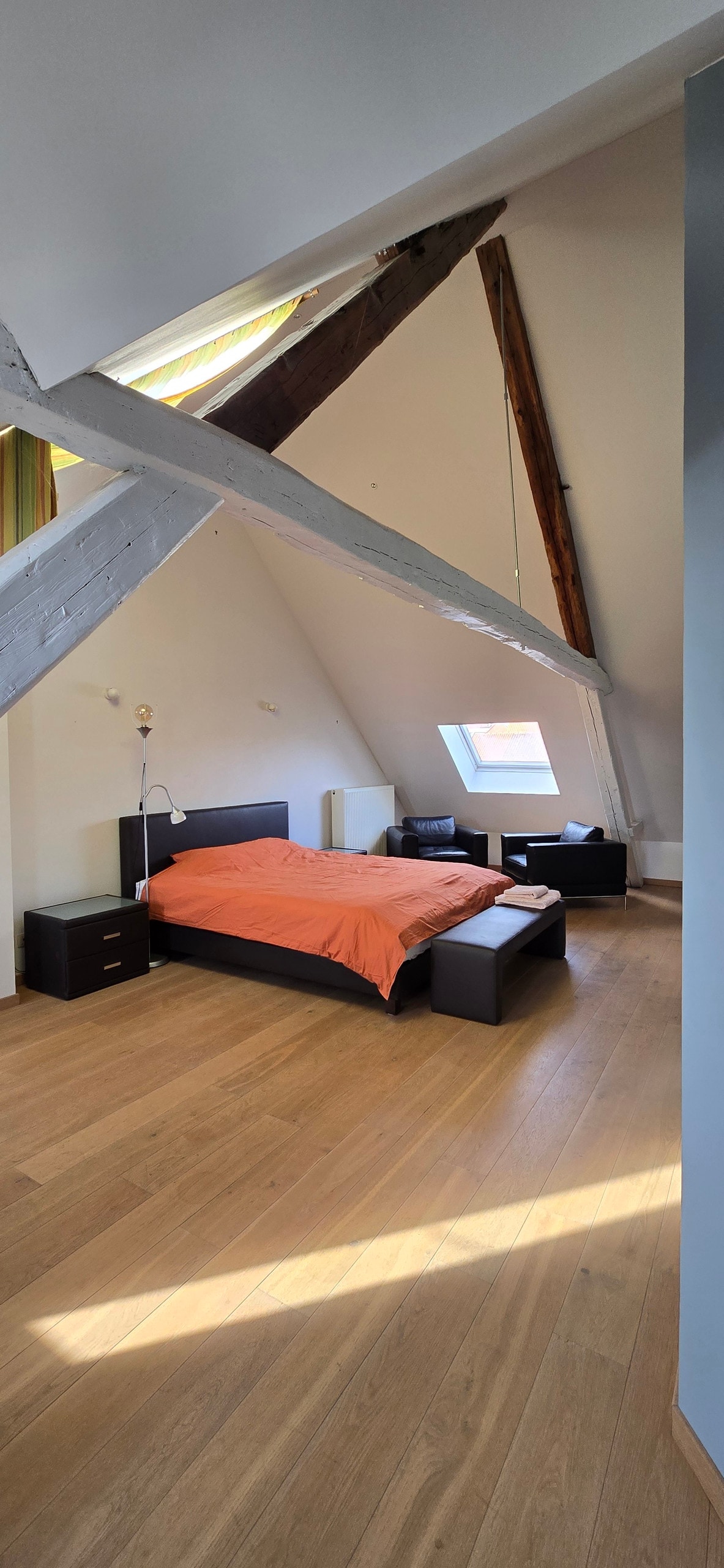 Stay in the recently renovated attic, equipped with a private kitchen and bathroom. This private studio, located on the top floor of the house where I live and work, is exclusively for you. Close to a P+R with numerous public transport options to the city (10 min) or on foot (40 min). The location is just outside the city center, perfect for those who want to visit the city and then relax and sleep in a quiet suburb. Free street parking and 3 bikes are for available rent (inform in advance).