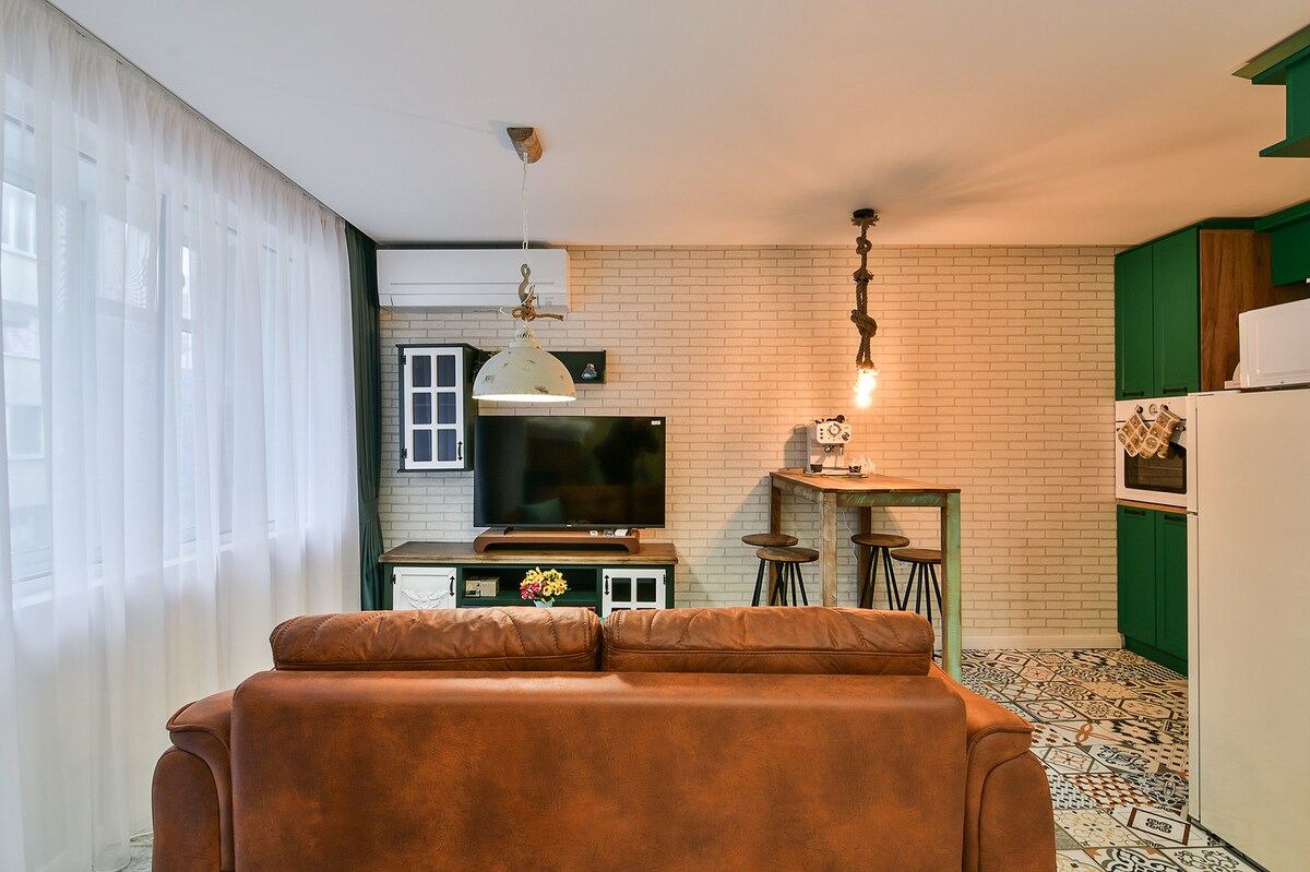 Uživajte u boravku na našoj vrhunskoj lokaciji u Varni! Ovaj stan sa jednom spavaćom sobom opremljen u jedinstvenom klasičnom stilu nudi đakuzi u zatvorenom prostoru! Uživajte u vrhunskom luksuznom iskustvu sa našim đakuzi stanom, gde će kombinacija udobnosti, elegancije i izuzetnog pogleda stvoriti uspomene koje će trajati ceo život.