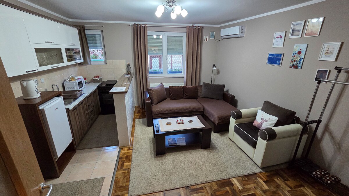 Fully equipped one bedroom flat in the center of the city of Niš, with free private parking lot on demand. All the furniture is modern and quality, all beds, linens, towels, pillows, dishes.... all! Everything in the studio is there for you and you can use it as long as you need, without any restrictions.