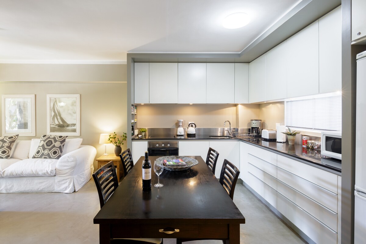 Bićete udobni na ovom mirnom i bezbednom mestu na savršenoj lokaciji u Kejptaunu na atlantskoj obali. Otvorite klizna vrata kako biste udahnuli okeanski vazduh nakon što pripremite obrok u kompletnoj kuhinji. Sa jedinstvenim instalacijama i jednostavnim stilom, ovo je idealno utočište u Kejptaunu. Izuzetno udoban, prepun sadržaja i parkinga van ulice. Inverterski sistem obezbeđuje struju tokom tereta za svetla, super brzi Wi-Fi, televizor, frižider i utičnice za punjenje telefona/računara.