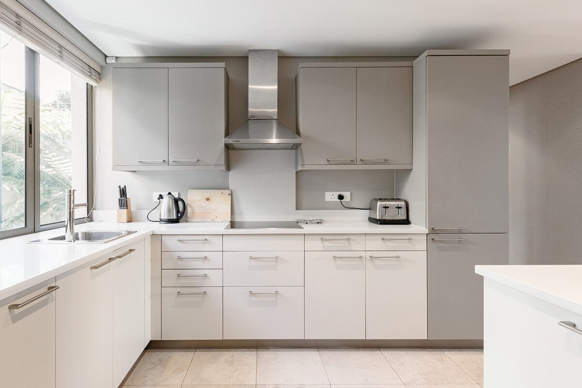 Doživite najbolje u tehnologiji i luksuznom udobnosti u našem namjenski izgrađenom, radnom putovanju, video-konferencijskom studiju. Smešten u modernoj ulici Breë na 21. spratu najviše stambene zgrade u Kejptaunu, ovaj stan će pružiti sve što je modernom globalnom stanovniku potrebno. Počnimo s prekrasnim pogledom na ocean i grad. Dodajte tome sve što vam treba za rad. Podesivi radni sto, internet linija od 200 mbps, pomoćni rastvor za struju, pa čak i video osvetljenje.