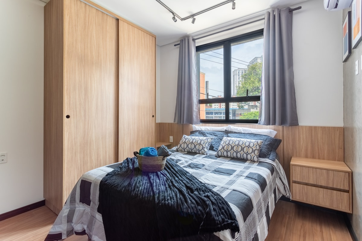 Experience One Eleven in Vila Olimpia. This modern apartment features large windows with breathtaking city views and natural light. The unit boasts 600 Mbps internet and a 4K HD TV. For total comfort, it has a Hot/Cold AC system: 27,000 BTU/h unit in the living room and 10,000 BTU/h in the bedroom. The bedroom is quiet and dark for a restful sleep. Impeccably maintained, you’ll be walking distance to top restaurants and business hubs—a safe, upscale retreat with a stunning urban backdrop.