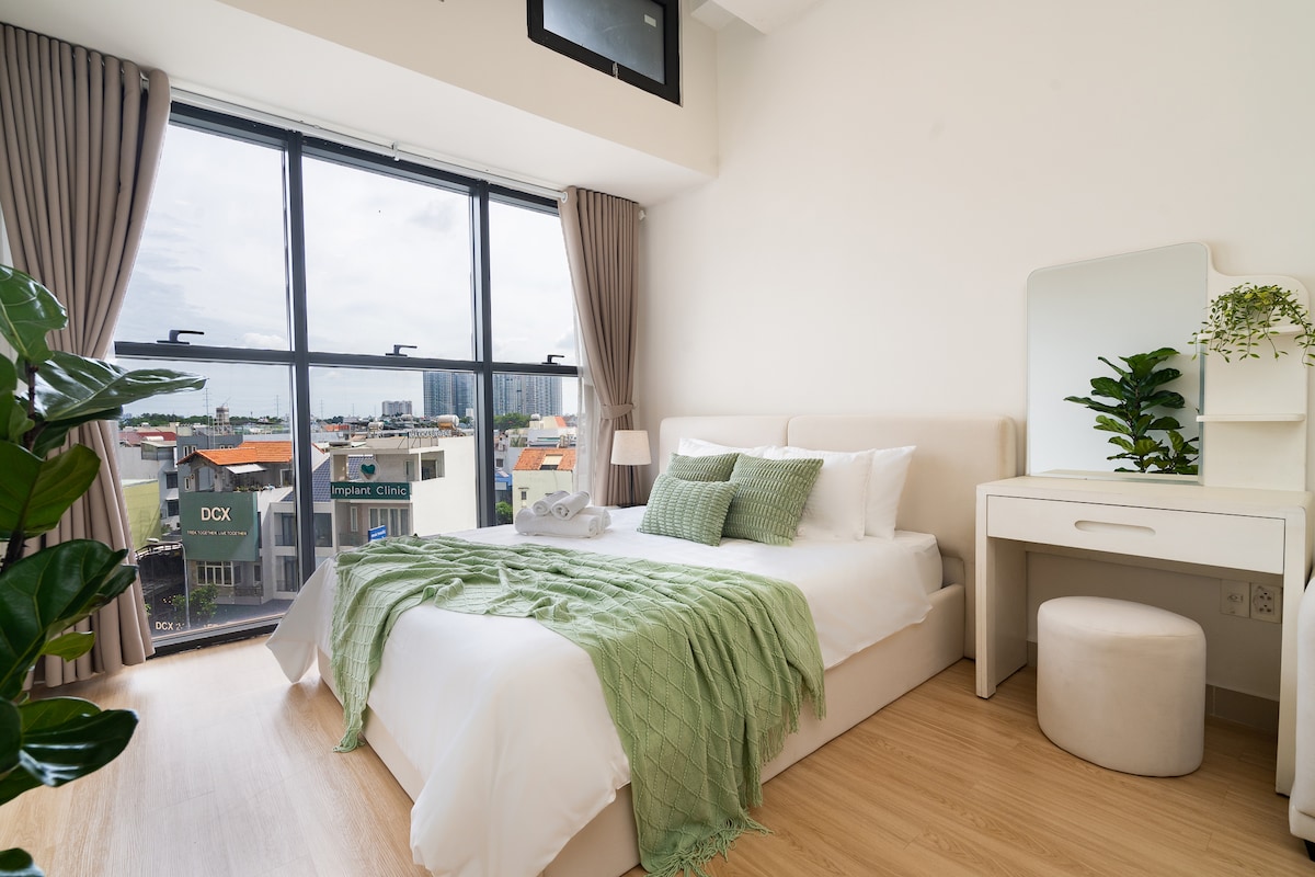 🌅 Wake up to soft morning light and lush garden views from your private balcony at Diamond Island, one of Saigon’s most peaceful and luxurious residences. With elegant décor, warm lighting, and a cozy chic ambiance, this home brings a perfect sense of calm — your quiet oasis amid the city’s vibrance. Whether you’re here for work or relaxation, every detail is thoughtfully prepared for your comfort: premium linens, a Netflix-ready Smart TV, and a fully equipped kitchen for your favorite meals.