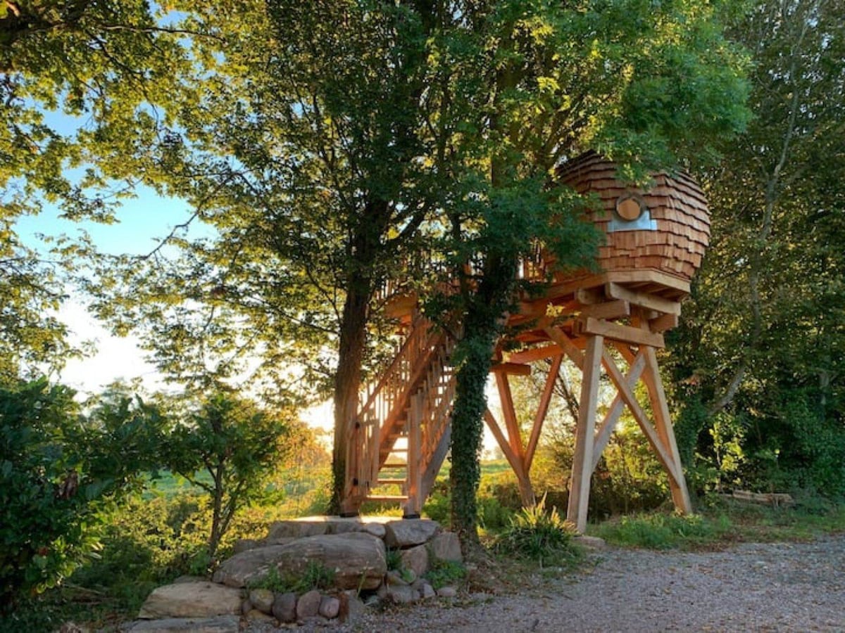 Malo gnijezdo smješteno na drveću, izvan pogleda na 4 metra od zemlje... u ekološki prihvatljivom pristupu. Gnijezdo je mala kugla opremljena okruglim krevetom 2,1 m, koji može udobno da primi dvije odrasle osobe. Skrivena terasa u kruni na drvetu otvara se na istoku, savršena za doručak na otvorenom. Na spratu imate pristup privatnom prostoru kako bi vam boravak bio udobniji: kupatilo, WC šolja, mini kuhinja