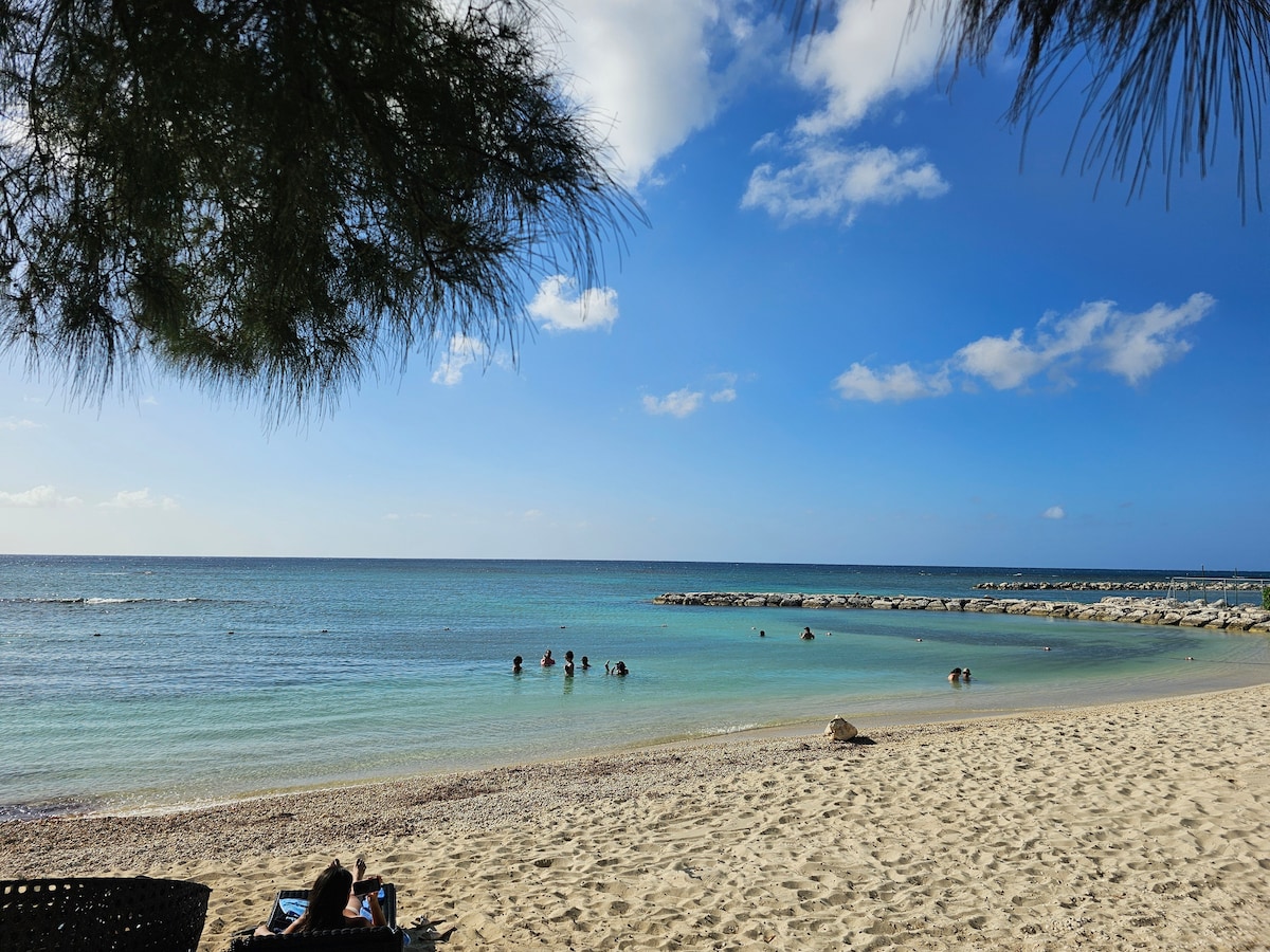 Welcome to Ocean Caribe spacious 1 BR Apt that recently renovated, which boast a breathtaking view that is centrally located at Upper Deck gated Apt complex with just 3 mins drive from the Sangster's Intl Airport, mins walk to harmony beach park and the famous hip strip. The Apt is perfect base for exploring the rich culture,stunning Landscapes . you'll have access to a fully equipped kitchen & utensils. this vintage apt complex have pool access, bar, restaurant & laundry services.