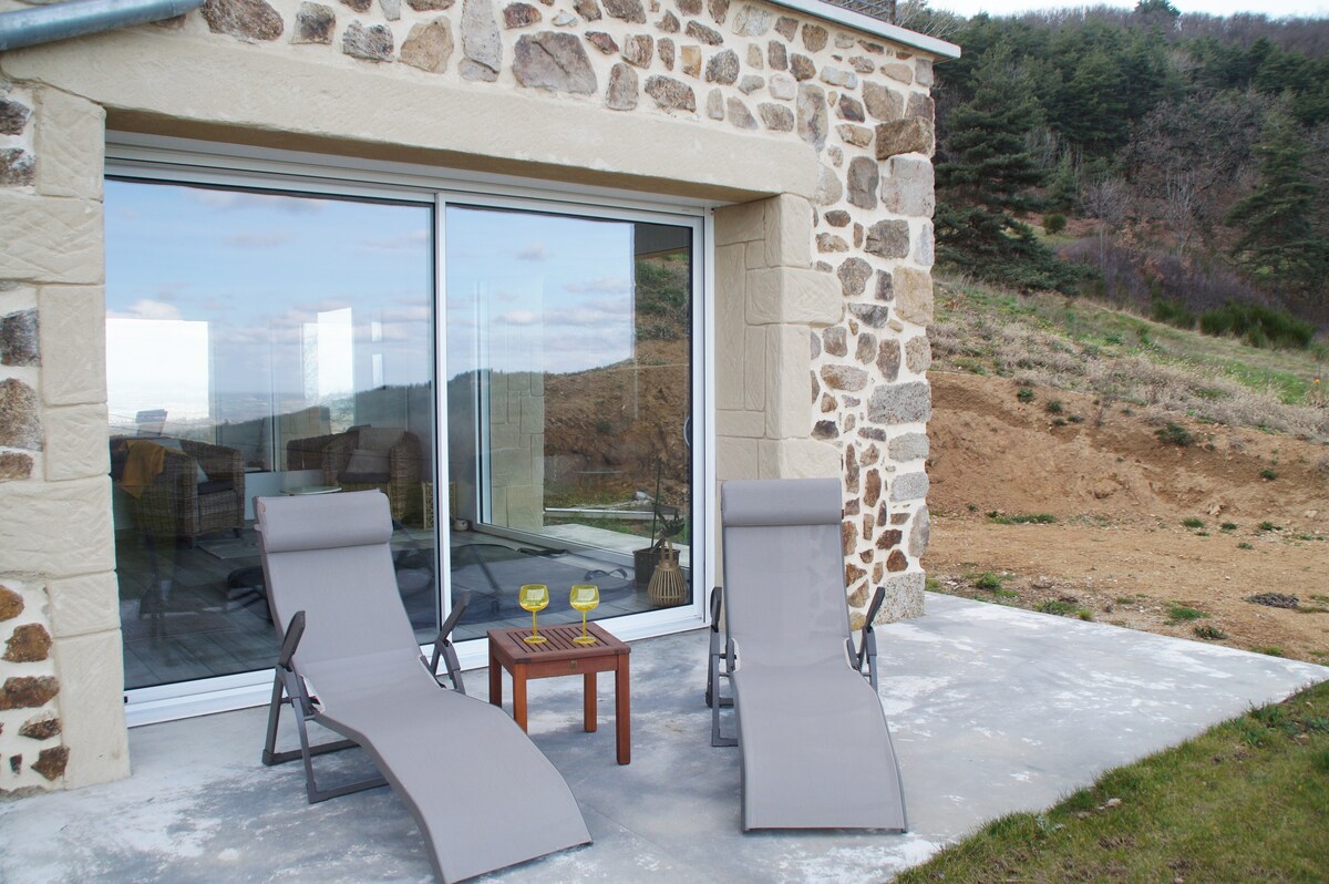 U srcu prirodnog parka Pilat, u blizini Ardeša, sa direktnim pristupom planinarskim stazama. Novi nezavisni smještaj sa privatnim spa centrom, integrisanim, bračnim krevetom, stolom za masažu, terasom do koje se može doći iz spa centra i pruža pogled na Alpe i Monblan po vedrom danu. Velika terasa na spratu. Parking na ulazu. Sve udobnosti koje su vam potrebne za prekrasan odmor u zelenom i privilegovanom okruženju. 30 minuta od A7, 1 sat od Liona. Obezbijeđena je posteljina, peškiri, kućni ogrtači.