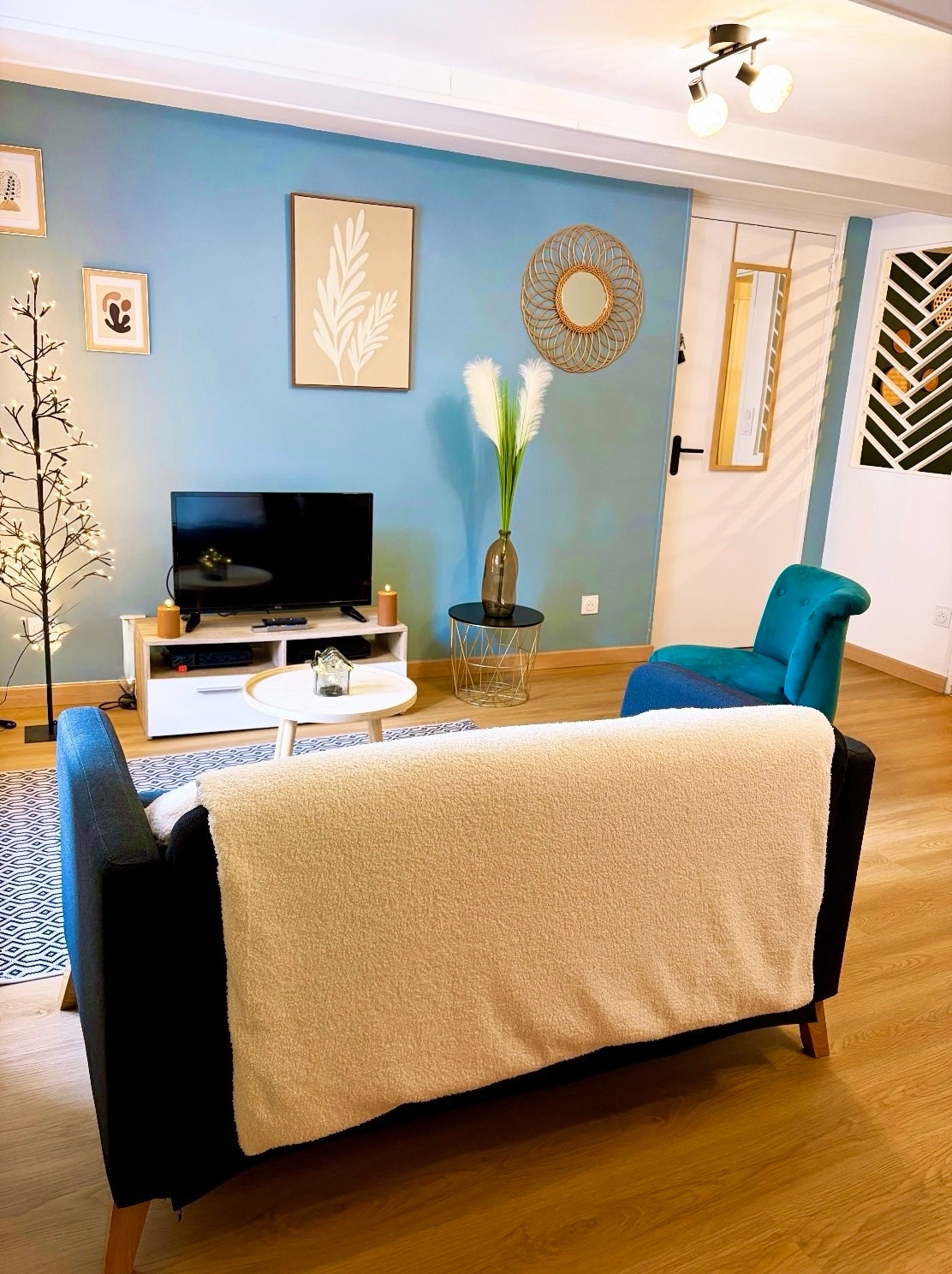Voici le petit frère de l’appartement « bienvenue chez vous! » après de long mois de travaux il est enfin disponible ! Appartement en rez de chaussée avec entrée indépendante. Vous y trouverez tout le confort moderne, cuisine équipée, internet, tv 138 cm dans le salon, machine à laver, écran cinéma de 200 cm avec Netflix, Amazon prime dans la chambre, un espace extérieur privé (en cours d’aménagement), une place de parking le tout à 15 min À PIEDS du plein centre ville ! WIFI