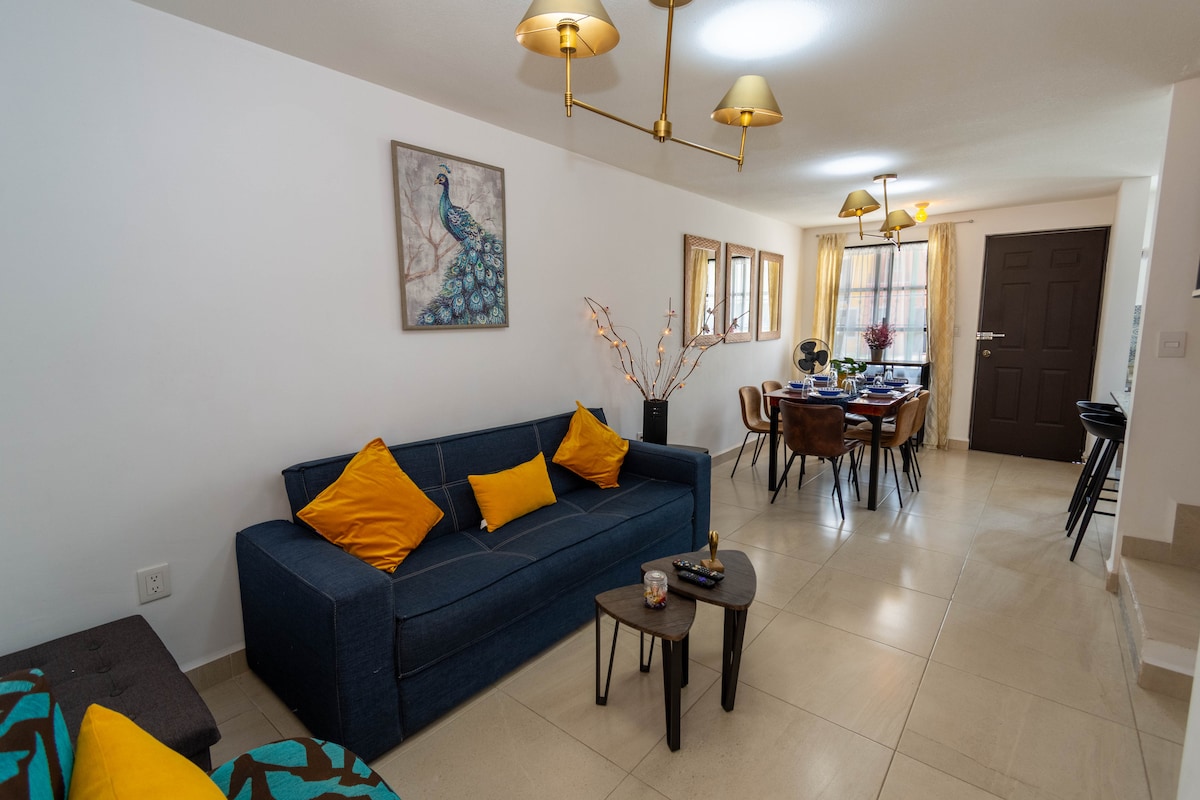 Single level home with two bedrooms to enjoy nature, gardens, sunsets and to disconnect from civilization. - Gated Community with 24/7 security. - Free weekend shuttles to downtown. - Fiber optic internet at 200mb/s > 10min by car to "El Jardin" > 300 feet to Club de Golf Malanquin > 1/2 mile to Clínic "UNIMED" > 1/2 mile to the supermarket "LA COMER" It is designed for a family of 4 but we can have up to 6 guests by using two sofa beds in the living room (at an additional cost)