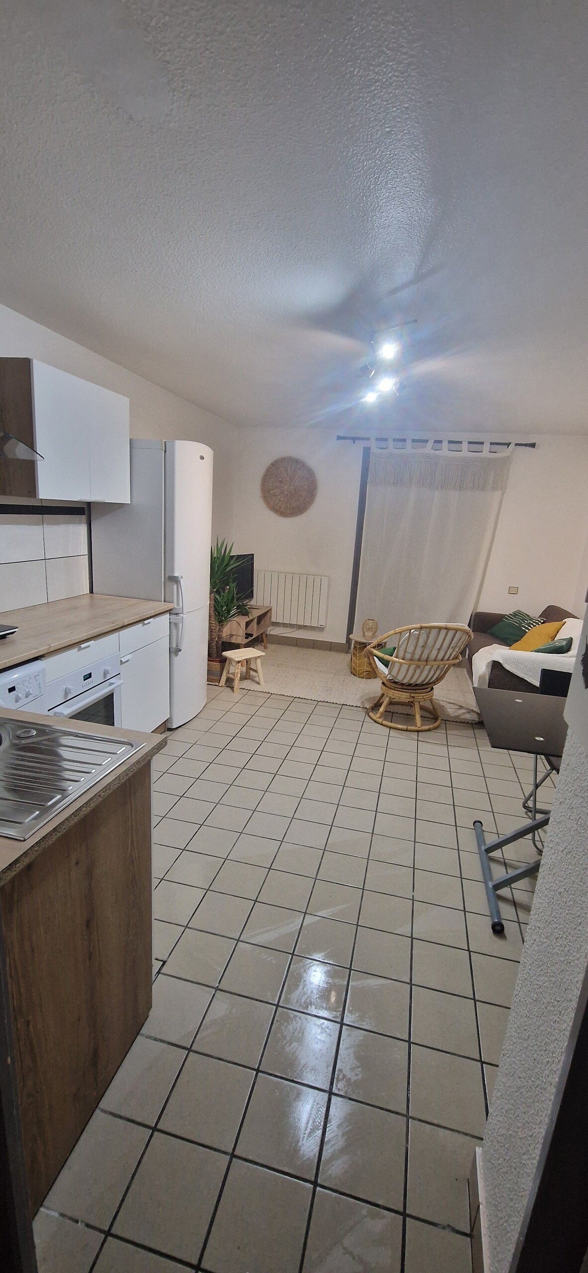 Prostran i spokojan smještaj zahvaljujući mnogim biljkama unutra i na velikoj terasi od preko 15 m2. Dostupno automobilom , centar Grenobla je udaljen 15 minuta, a skijališta su udaljena 45 minuta Stan se sastoji od veoma velike dnevne sobe, opremljene šporetom i reverzibilnim klima-uređajem, TV-a od 160 cm, kuhinje opremljene američkim frižiderom i mezanina, prave čahure sa pogledom na zvezde zahvaljujući veluksu.