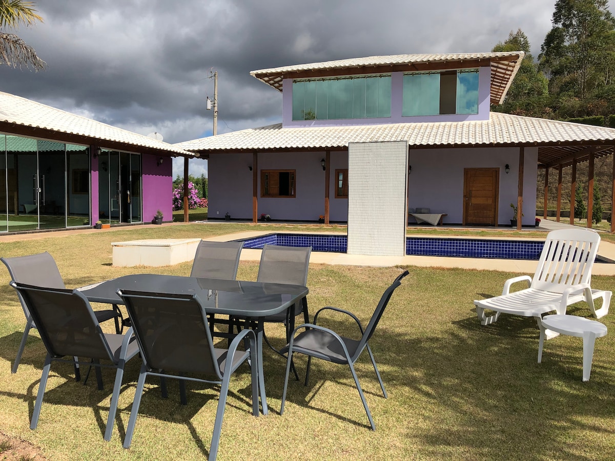 Casa de Campo cozy. Mirni mali kutak u prirodi. Pruža jedinstven doživljaj na selu. Smještajna kuća se nalazi u sklopu Sitio Aquarela (@ sitio.aquarela), gdje uzgajamo jagode. U blizini glavnih znamenitosti i gastronomskog centra regiona, između Pedra Azula i Venda Nova do Imigrante. Jednostavno i udobno. Može da primi 04 osobe do 02 više. Ima 1 dvokrevetnu spavaću sobu i 02 jednokrevetne spavaće sobe, dnevni boravak, balkon, kuhinju i 01 kupatilo. Dođite i uživajte.