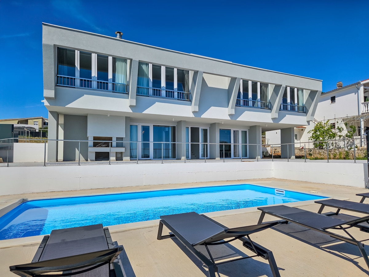 Vila Hrvatska s pogledom na more i grijanim bazenom