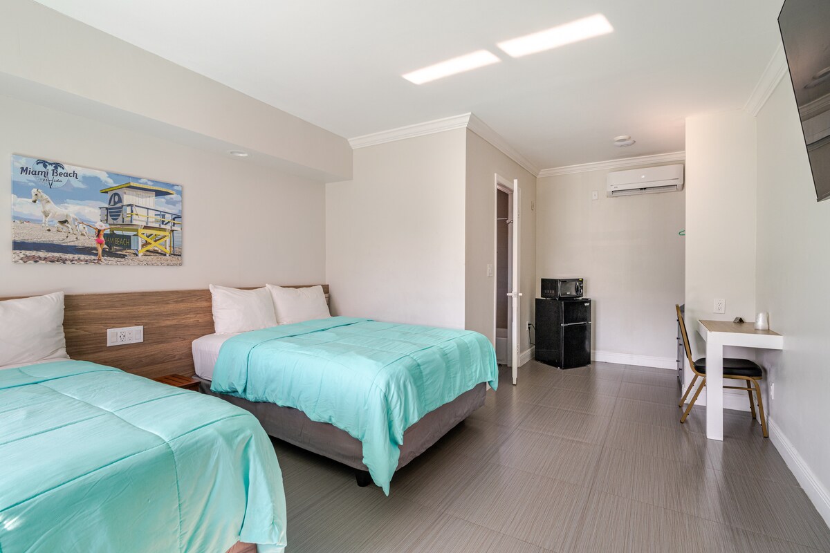 Ovaj elegantni smeštaj je boravak u stilu u ovom kul butik hotelu u istorijskoj zgradi MiMo na bulevaru Biskejn, na samo nekoliko minuta od Dizajnerskog okruga i blizu Južne plaže. Savršena za porodice ili grupe, ova prostrana soba može udobno da primi do 4 gosta (2 gosta su uključena, druga 2 su dodatna), sa 1 bračnim krevetom (king size) i 1 krevetom na sprat (krevet na sprat je dostupan uz doplatu). Uživajte u modernoj udobnosti kao što su Smart TV, bazen, restoran i parking u sklopu objekta koji je dostupan po cijeni od 15 $ po danu.