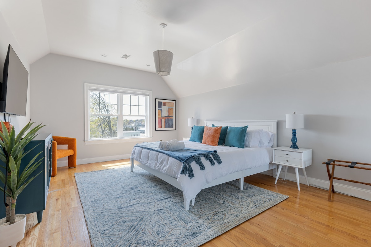 Modern 2BR/2BA home for families, groups, or business travelers: • 2 bedrooms with queen beds • King leather sofa bed in living room serves as master sleeping area • 2 bathrooms with rainfall showers • Full kitchen, open living/dining, smart TVs, fast Wi-Fi • In-unit washer/dryer, central A/C & heat • Private and on-street parking • Quiet neighborhood near shops, parks, transit & Boston attractions.