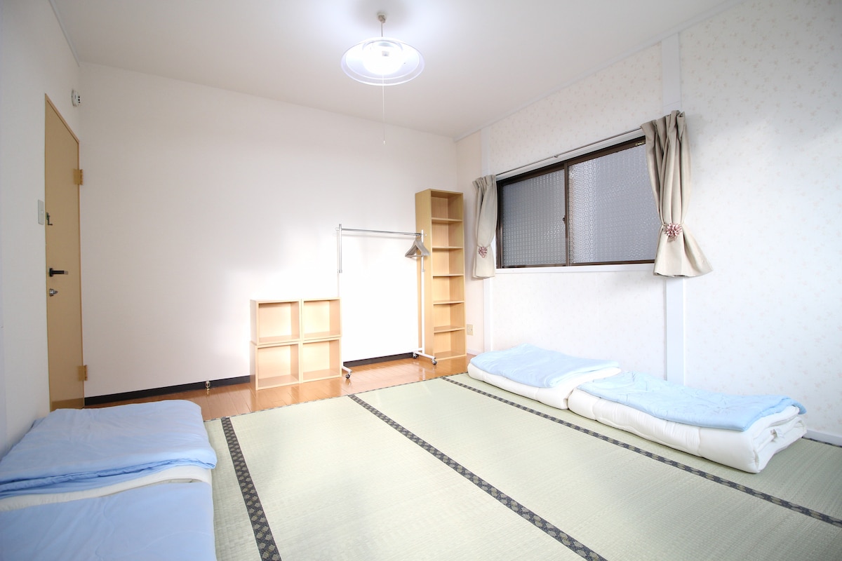 You will not share anything with others, the whole room, as shown in the photos, will be used entirely by you 5 of you. -The nearest station is Nipponbashi station (Osaka)walk 4 minutes. -Walk12 minuts to Namba station and Uehonmachi station. -walk five minuts to Tanimachi KyuChoMe station. - walk within 5-12 minuts , you can reach Kuromon market, Dontobori, Shinsaibashi, Nipponbashi Denden town. Sennichimae . BIC CAMERA.Namba station.