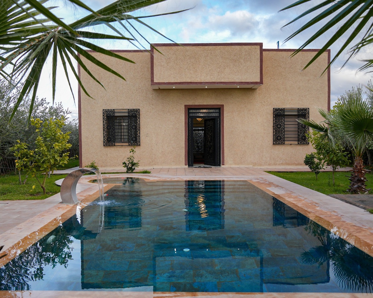 Villa privée avec piscine, verger, 4 chambres, pour 8 à 10 personnes. Découvrez le charme et l’authenticité du Maroc dans cette villa de prestige, nichée au cœur d’un domaine privé luxuriant d’un hectare, à quelques minutes seulement du centre de Marrakech. Inspirée de l’architecture traditionnelle marocaine et décorée avec élégance dans le style amazigh (berbère), cette propriété exclusive offre calme, intimité et confort.