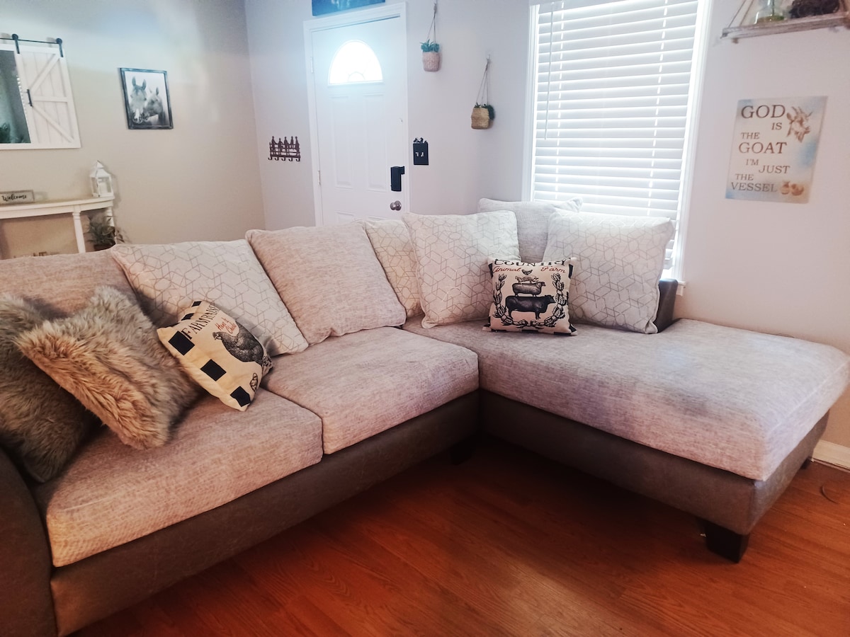 Ovaj stan je povezan sa domom na solarni pogon na tri nivoa, a stan je u podrumu, ali ima svoj ulaz, odvojen od glavnih stambenih prostora. Objekat se nalazi u Fairburnu, GA, 20 minuta od centra grada i 12 minuta od međunarodnog aerodroma u Atlanti. Ako ste osoba koja radi sa filmskim setovima ovde u Atlanti, naš dom je udaljen samo 5 minuta od studija metroa u Atlanti i 20 minuta od studija Tajler Peri. ---- Kliknite na moj profil za druge smještaje koje imam.