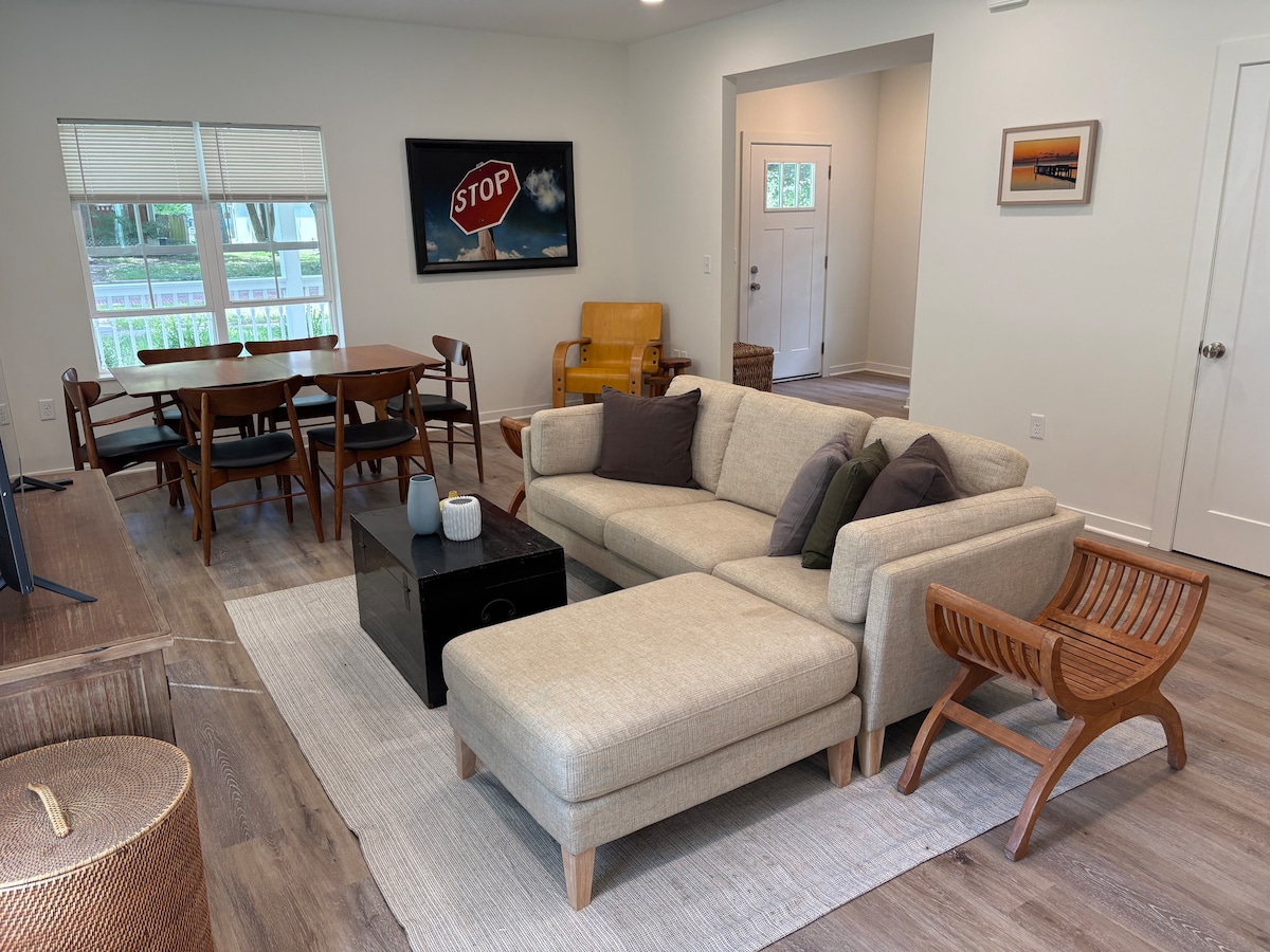 Dvosobna kuća u nizu sa kapacitetom za spavanje (2 bračna kreveta i kauč na razvlačenje). Blizina centra Lorens i kampusa KU. Karakteristike koje treba napomenuti uključuju: osvijetljeni prednji trijem sa zvonom na vratima kamere Nest i prilagođen pristup osobama s invaliditetom, dva parking mjesta, centralnu klima-uređaj/grijanje, elektronsku bravu na vratima, kameru za gnijezdo na prednjem trijemu za beskontaktnu prijavu i odjavu. Smeštaj je izuzetno čist i profesionalno uređen. Obratite nam se ako imate bilo kakvih pitanja. Hvala na gledanju.