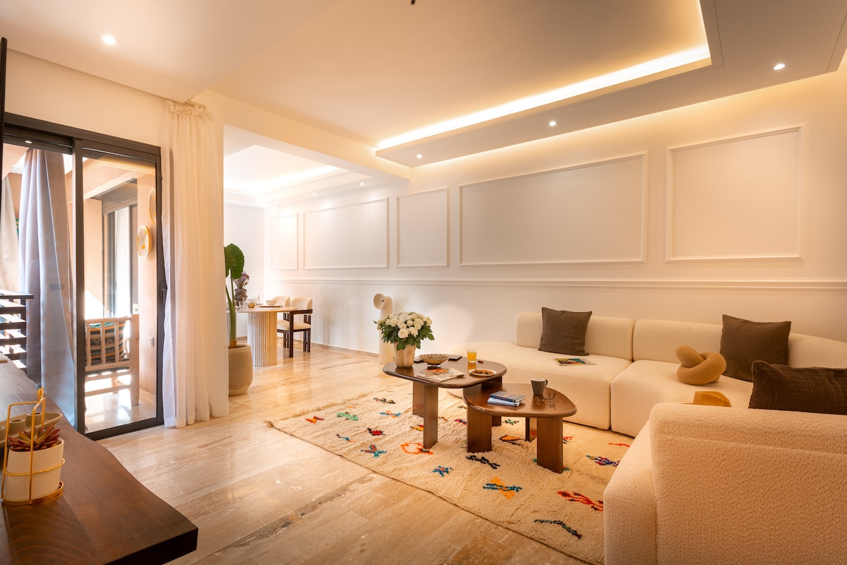Uživajte u boravku u modernom i dobro namještenom stanu pored svih sadržaja nove rezidencije. Ima 1 spavaću sobu opremljenu 4K kućnim bioskopom, dnevnim boravkom, kupatilom, američkom kuhinjom i malom terasom. • Snažan klima-uređaj • Brzi pristup Carré Eden, Majorelle, restoranima • Višednevni kućni bioskop Pored toga, tokom vašeg boravka je uključena i internet veza od 5 G. Marakeš će vas uvijek dočekati. 😊