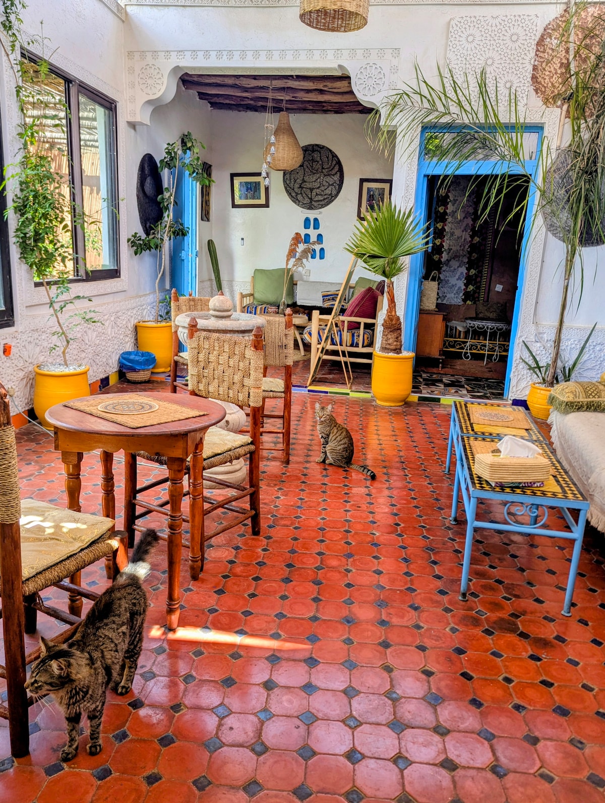 Bienvenus au riad CHALYIA. Un lieu paisible où vous vous sentirez chez vous. Le riad est au cœur de la medina , proche de la frénésie de la place principale mais dans une rue calme et douce. Il possède 3 chambres avec salle de bain privée. Un salon salle à manger en intérieur et un salon extérieur ainsi qu une cuisine équipée. Sur la terrasse vous pourrez profiter du soleil d’ un bel espace détente et d’une petite piscine. Le riad possède une deuxième terrasse pour admirer les couchers de soleil