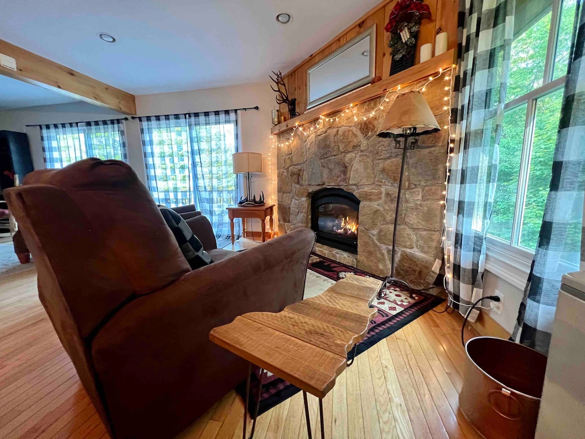 The Shiny Elk Chalet is your bright and sunny mountain home located in the Southern VT near the Green Mountain National Forest just 7 miles from Mount Snow Ski Resort, and 13 miles from Stratton Mountain. Odmorite se i opustite u maloj privatnoj slijepoj ulici. Ogromni prozori ispunjeni prirodnim svjetlom u poslijepodnevnim satima. Ljeto: uživajte u ognjištu i napravite kolače! Roštiljajte na našem roštilju na propan i uživajte u predivnom kamenom dvorištu i vrtnom namještaju. Istražite lokalne gradove, vodopade i VT.