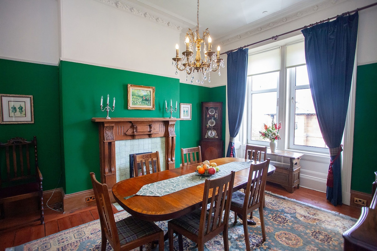 Fantastična, mirna lokacija u srcu Kelvinbridža, nekoliko minuta hoda do parka, Univerziteta, umjetničke galerije i prodavnica, kafića i restorana u Vest Endu. Prizemlje kuće u nizu iz 1870-ih, Veliki dnevni boravak - otvorena vatra, trpezarijski sto. opremljena čajna kuhinja - frižider, kutija za led, kafić. Velika, sunčana spavaća soba, carski krevet, pamučna posteljina, prirodni dušek, teške zavjese . Kupatilo ispunjeno biljkama, samostojeća kada, tuš u ravnini poda. Brzi WiFi. TV od 50inča. Alexa muzika. Kontrole grijanja