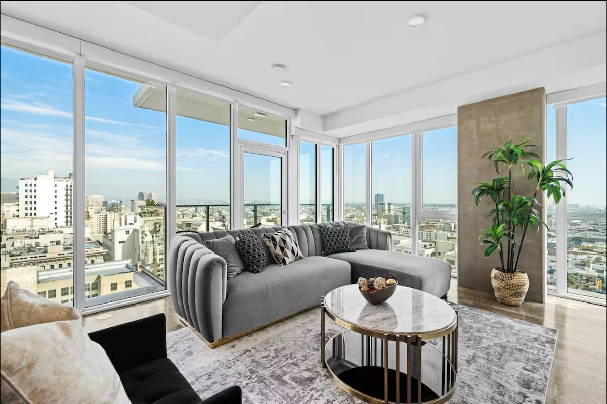 - Doživite vrhunski smještaj u Los Anđelesu sa zadivljujućim pogledom na horizont DTLA iz elegantnog nebeskog potkrovlja - Prostrani, moderni enterijeri dizajnirani za udobnost i opuštanje - Može da spava do 6 osoba sa luksuznom posteljinom i pažljivo osmišljenim sadržajima - Uživajte u potpuno opremljenoj kuhinji, savršenoj za domaće obroke - Ulaz bez ključa za glatku i jednostavnu prijavu - Ostanite povezani uz brzi Wi-Fi i opustite se uz pametne televizore - Besplatan rezervisani parking u DTLA! - Minovi iz glavnih atrakcija, restorana i zabave