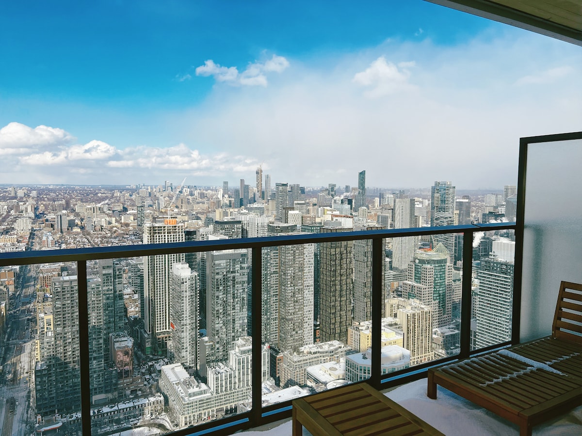 Uživajte u elegantnom doživljaju u ovom kondominiju koji se nalazi u centru grada. Naš smještaj je udaljen 5 minuta od jezera i nevjerovatnih atrakcija kao što su Scotiabank Arena, Ripley's Aquarium, CN Tower, Rogers Centre i još mnogo toga. Samo nekoliko koraka od stanice Union i sistema podzemnih STAZA. Ovaj kondominijum je odličan za putnike, turiste i poslovna putovanja. Prostor Naš kondominijum se nalazi na 51. spratu sa brzom Wi-Fi mrežom, Smart TV-om sa Netflix-om, toaletnim potrepštinama, fen za kosu, kuvalom, peglom, mašinom za pranje/sušenje veša i još mnogo toga.
