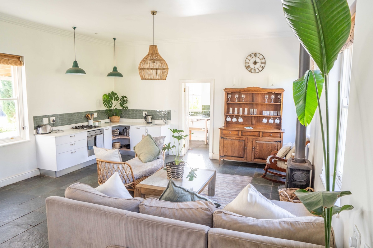 Skrovita seoska kućica okružena vinogradima i planinama sa romantičnim dekorom u stilu farme, kuhinjom otvorenog tipa, prednjim i zadnjim trijemom prekrivenim vinogradom sa pogledom na prelepu vinsku dolinu Velingtona. Svježa bijela posteljina, privatno kupatilo i soba s pogledom na vinograde i vinovu lozu. Mali bazen za prskanje (hladna voda) u dvorištu, privatna garaža za parkiranje, vinski podrum na farmi, uključujemo besplatnu degustaciju vina. Dom svjetski poznatih planinskih biciklističkih staza.