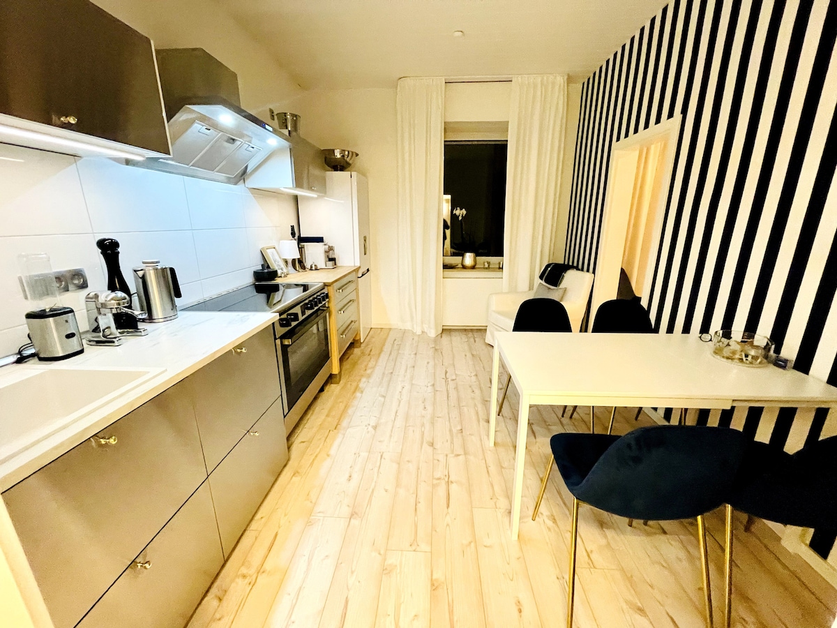 Gemütlich, lichtdurchflutete und stylisch neu eingerichtete Wohnung: Modernes Schlafzimmer +1 Schlafzimmer mit hochwertigem Boxspringbett & Smart TV Wohnzimmer + Gemütliche Sitzmöglichkeiten und TV Voll ausgestattete Küche + Mit gemütlicher Essecke mit 4 Stühlen + Öl, Kaffee, Tee, Salz, Pfeffer, Modernes Bad + Mit Dusche, Toilette und Waschtisch und 2 Fenster Unterwegs + Parkplatz und Fahrräder stehen kostenlos zur Verfügung + Zentrum schnell erreichbar mit dem Fahrrad, Auto und Bus.