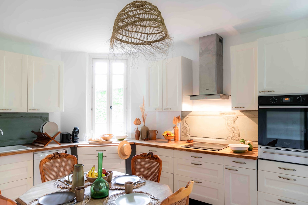 Welcome to Château de Sienne in Chusclan, a Provençal-style estate with 7 bedrooms. Come stay with family and friends in a 17th-century château, featuring a large pool and a pétanque court. Located by the river, you will be immersed in a bucolic and countryside setting, with charming décor. The château is fully privatized with the booking. We offer 7 bedrooms, 3 living rooms, 1 bathroom, 2 shower rooms, 4 toilets and 1 kitchen, across 500m² for an unforgettable stay!