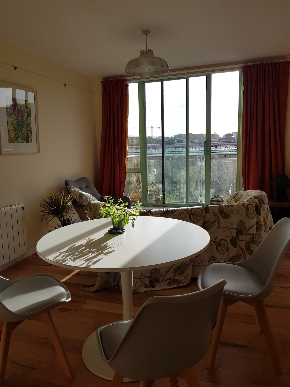 Charming, bright, one bedroom apartment. Seperate small well equipped kitchen. Airy bedroom with double bed and plenty of closet space. There is a comfortable fold out mattress bed. A balcony with folding chairs and table on the River Liffey with great views of Dublin City. Good location next to Heuston Station, Luas, many buses, taxis, Phoenix Park, the city centre and many bars and restaurants.