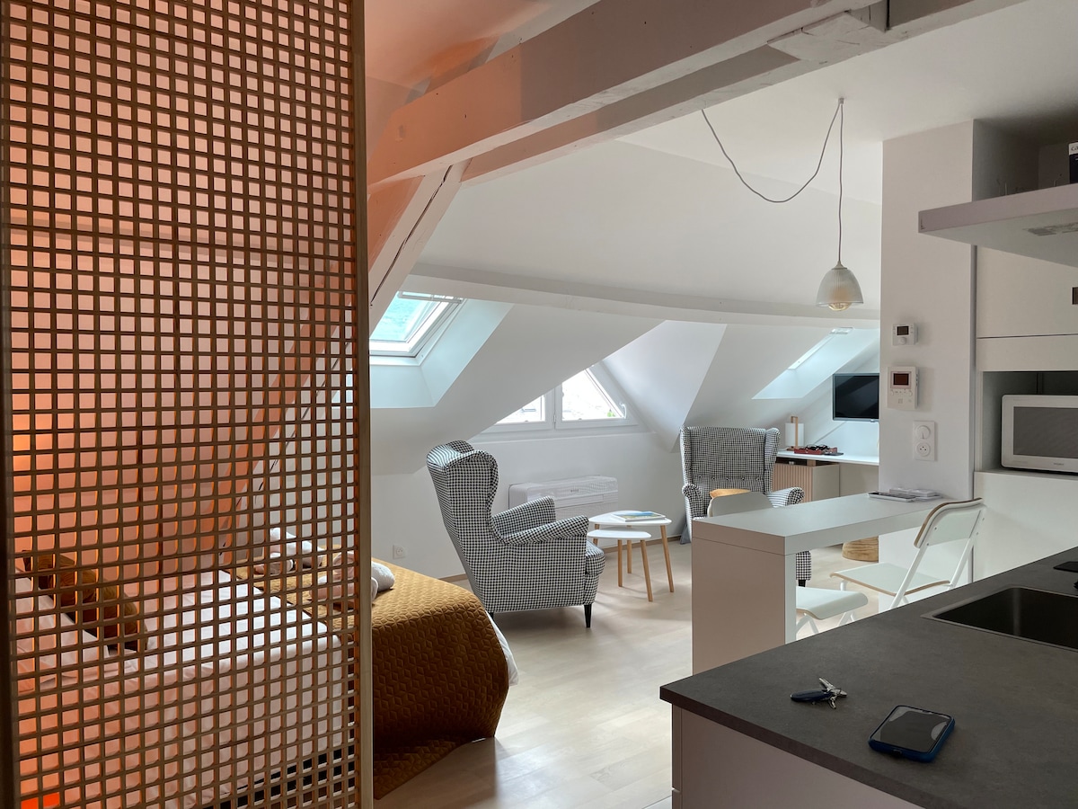 Ukusno renoviran studio apartman koji se nalazi u staroj palati u Eks le Bainsu 2 koraka od centra grada (kazino, turistička kancelarija, prodavnice, zeleni park). Savršeno za boravak u lijeku, profesionalni boravak, stažiranje ili odmor u Savoju. Mirno prebivalište osigurano digitalnom bravom. Za boravak duži od 7 noćenja: Tražiću od vas ček depozita u iznosu od 300 € koji ću vam vratiti po završetku boravka. Obezbeđena posteljina. Engleski / italijanski.